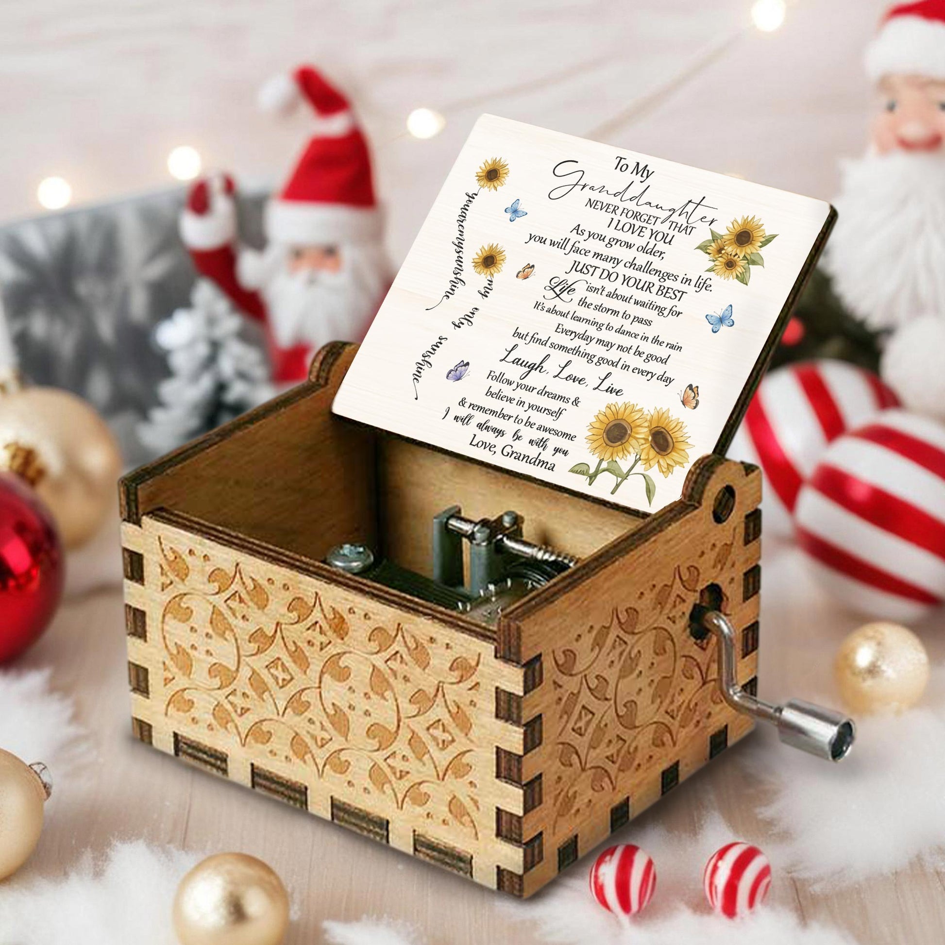 To My Granddaughter, Sunflowers And Butterflies, Custom Music Box, Gift For Granddaughters