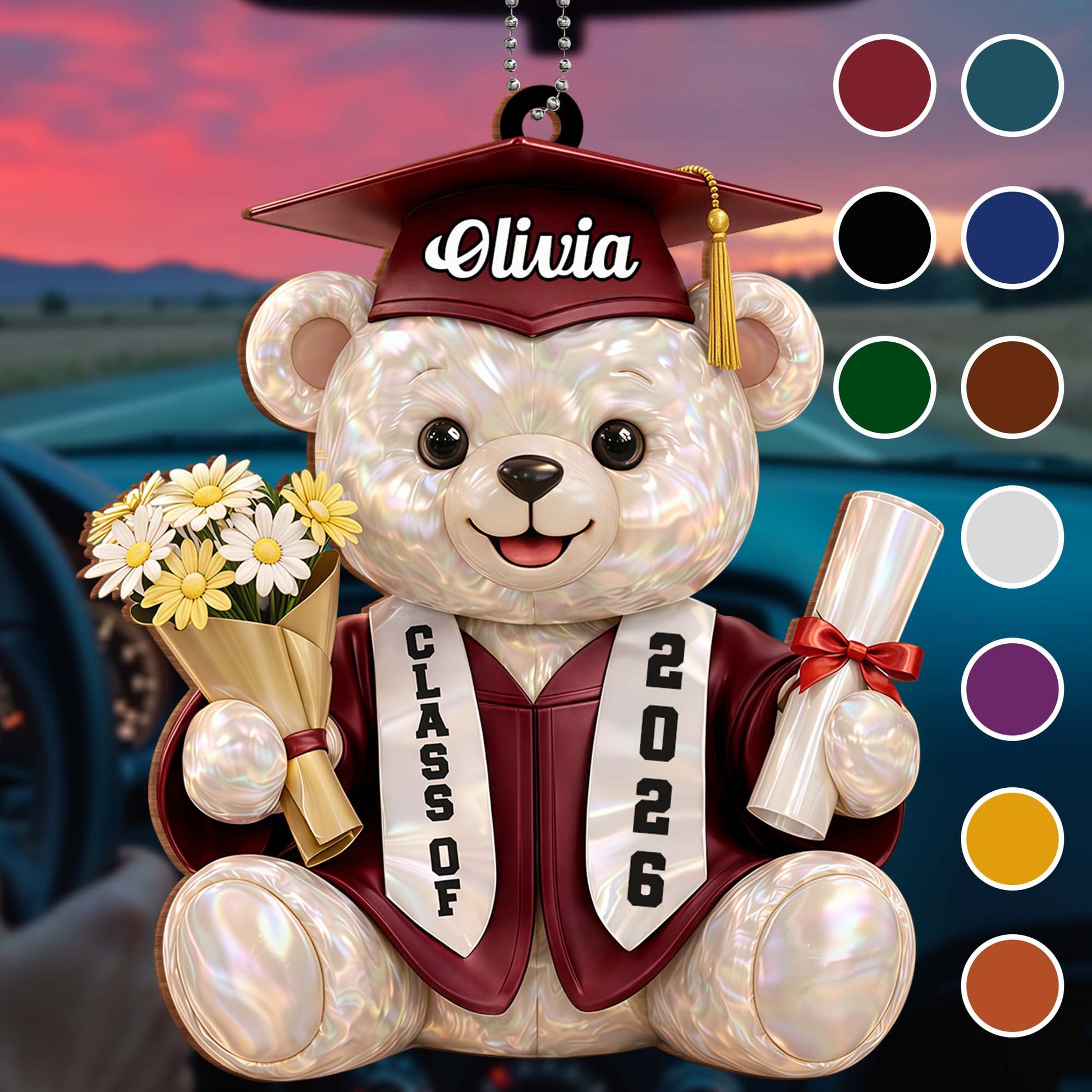 - Car-Ready Elegance: Designed for hanging on your rearview mirror, this ornament adds a personal and decorative touch to your vehicle.