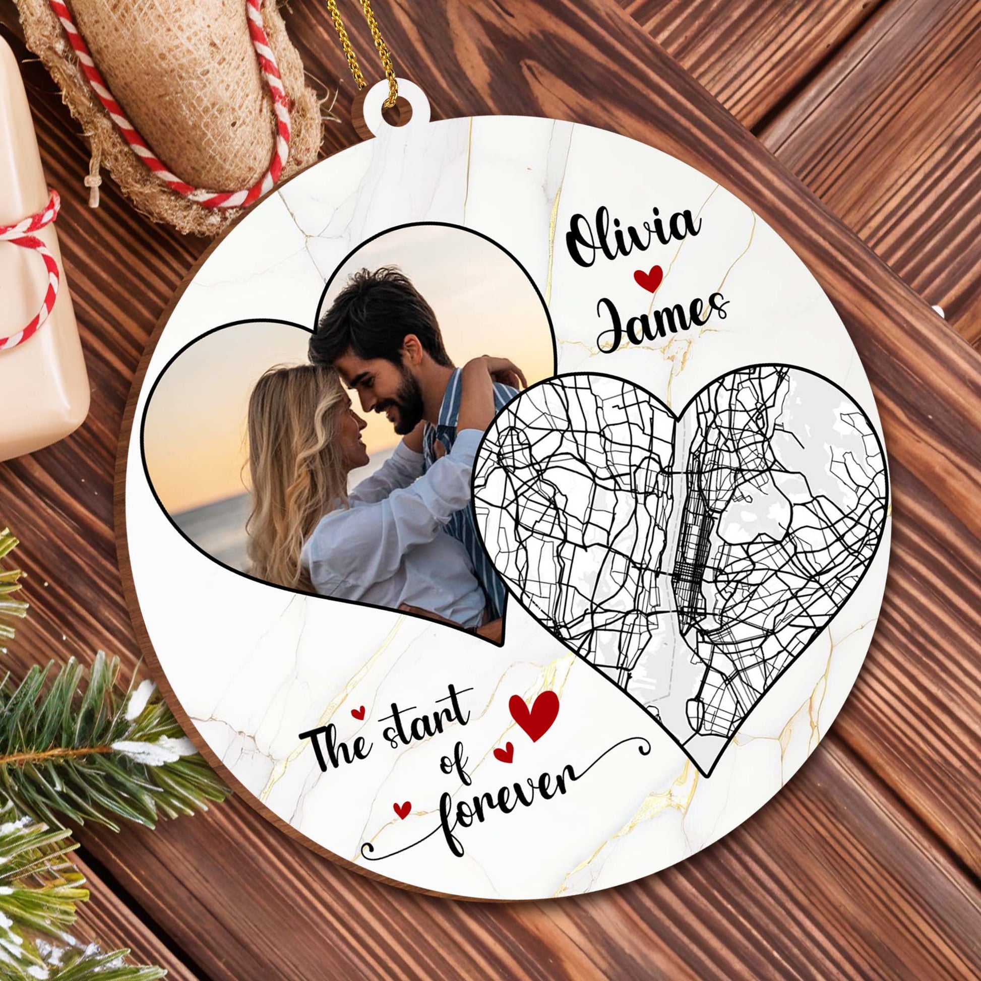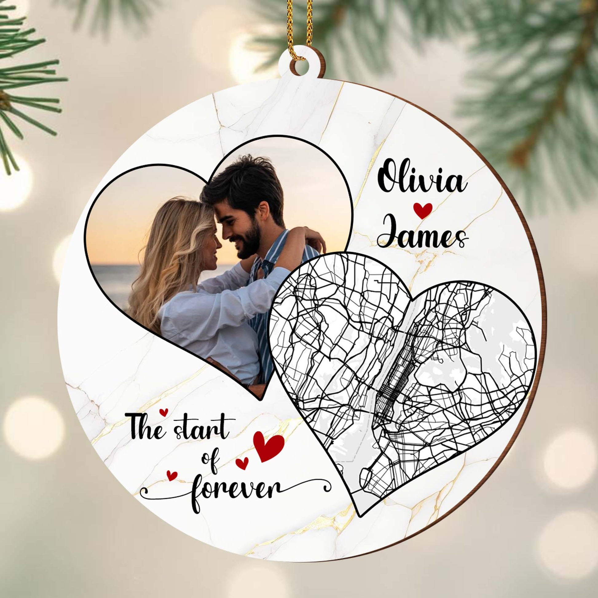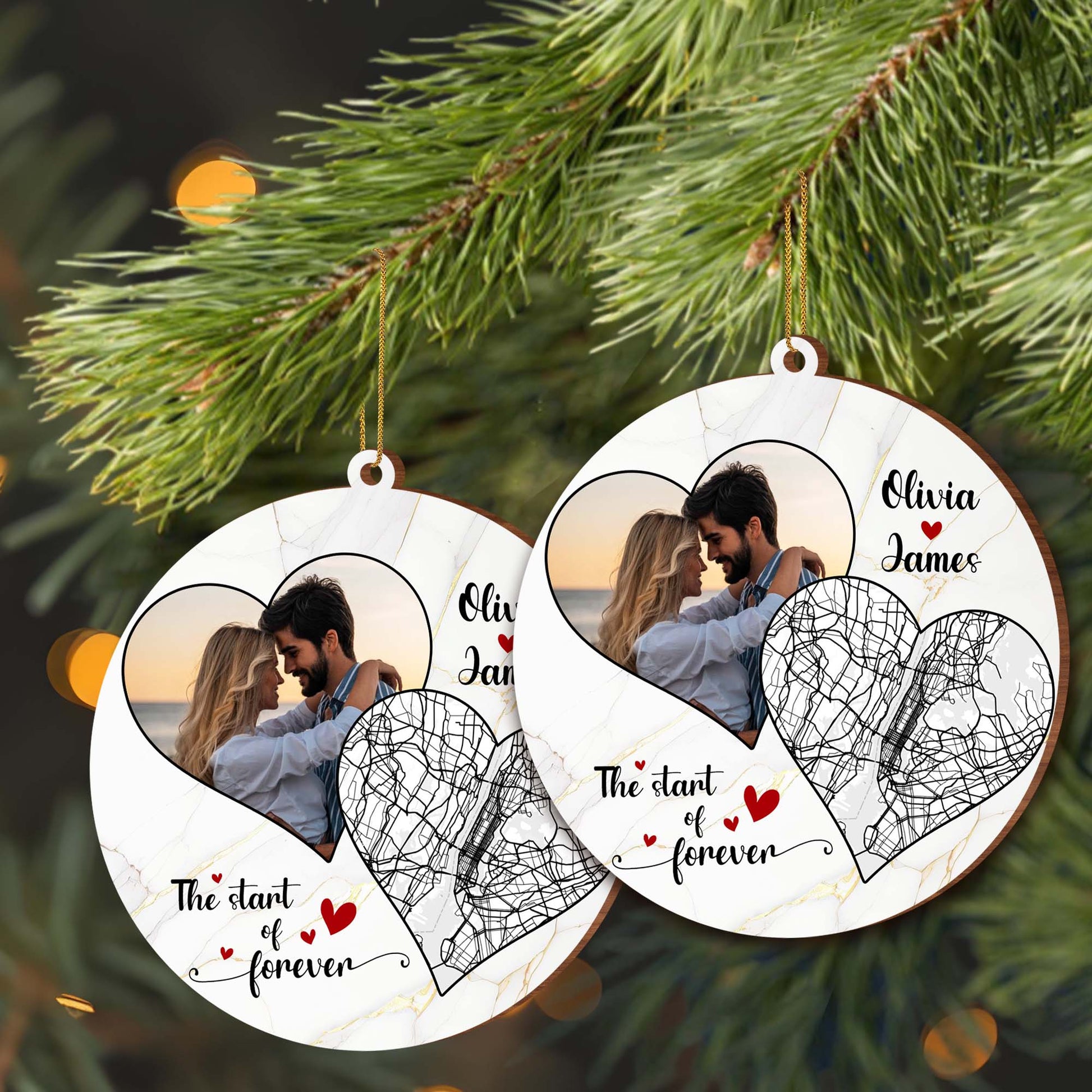 The Start Of Forever - Couples Personalized Custom Wood Ornament - Gift For Lovebirds