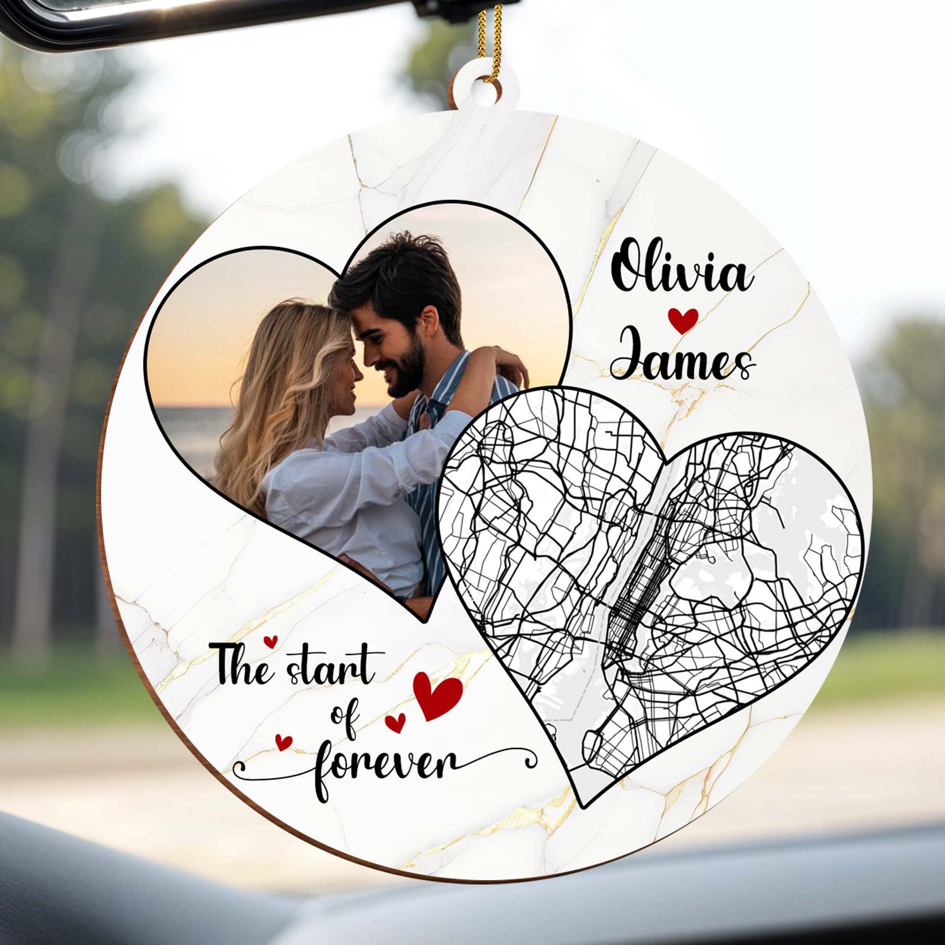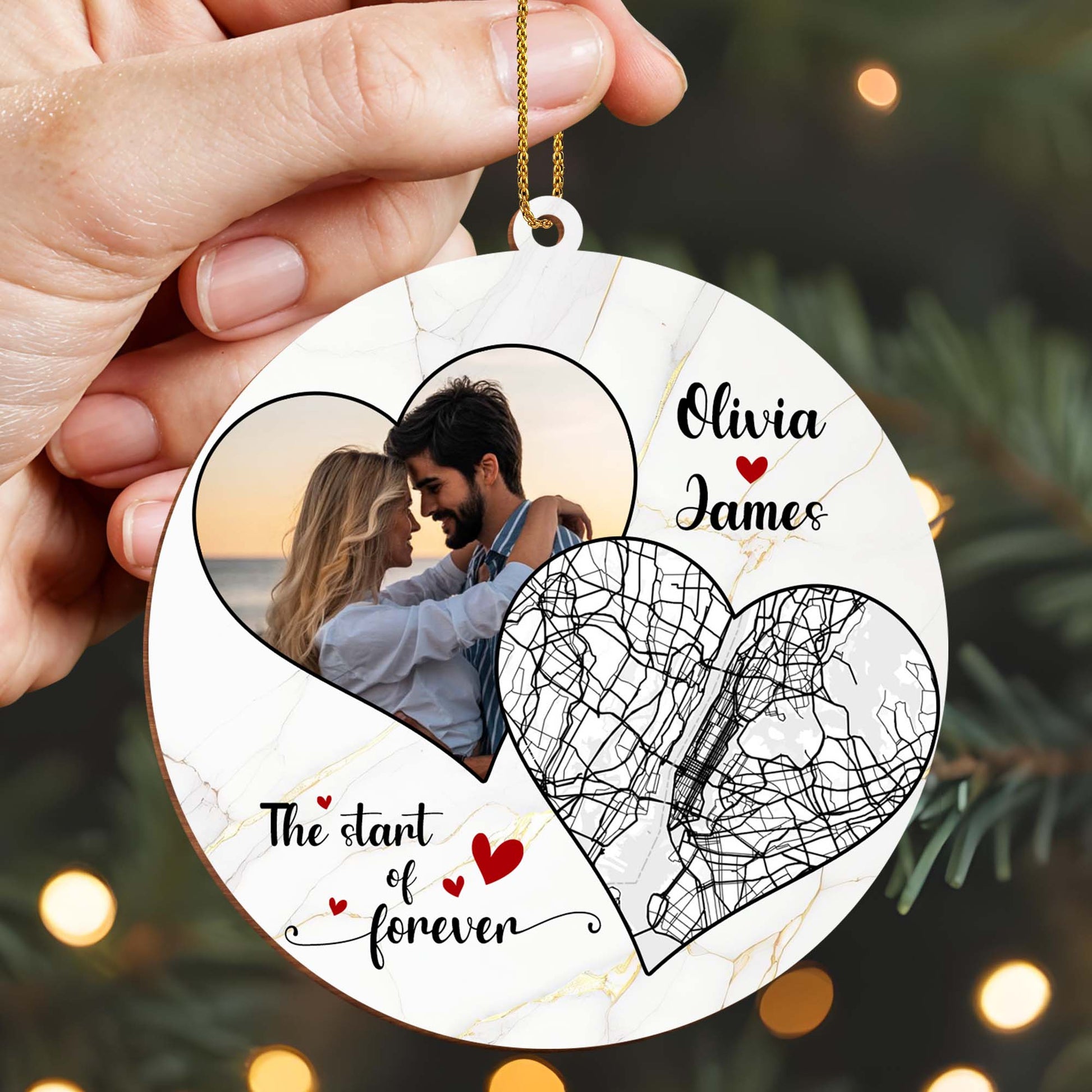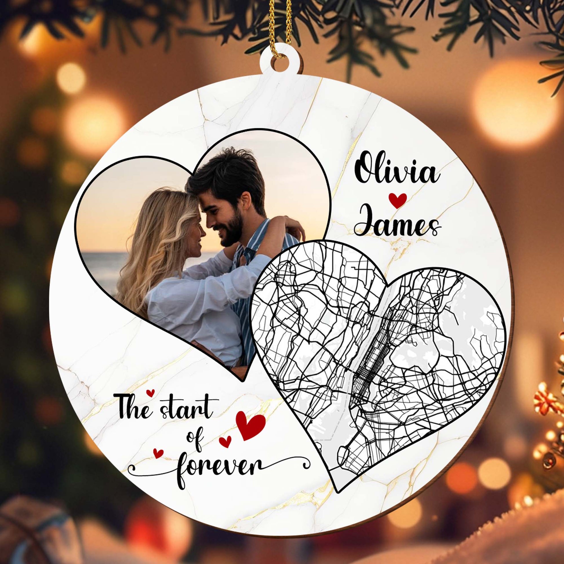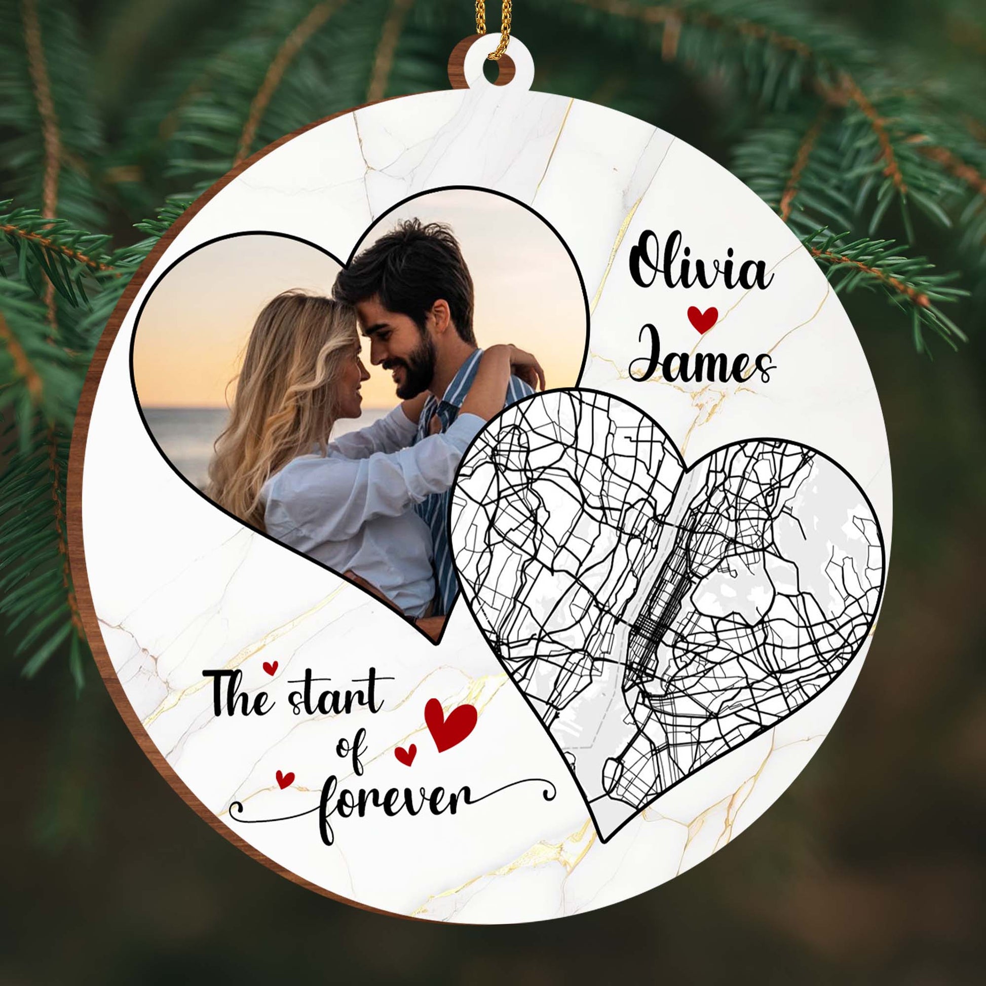 The Start Of Forever - Couples Personalized Custom Wood Ornament - Gift For Lovebirds