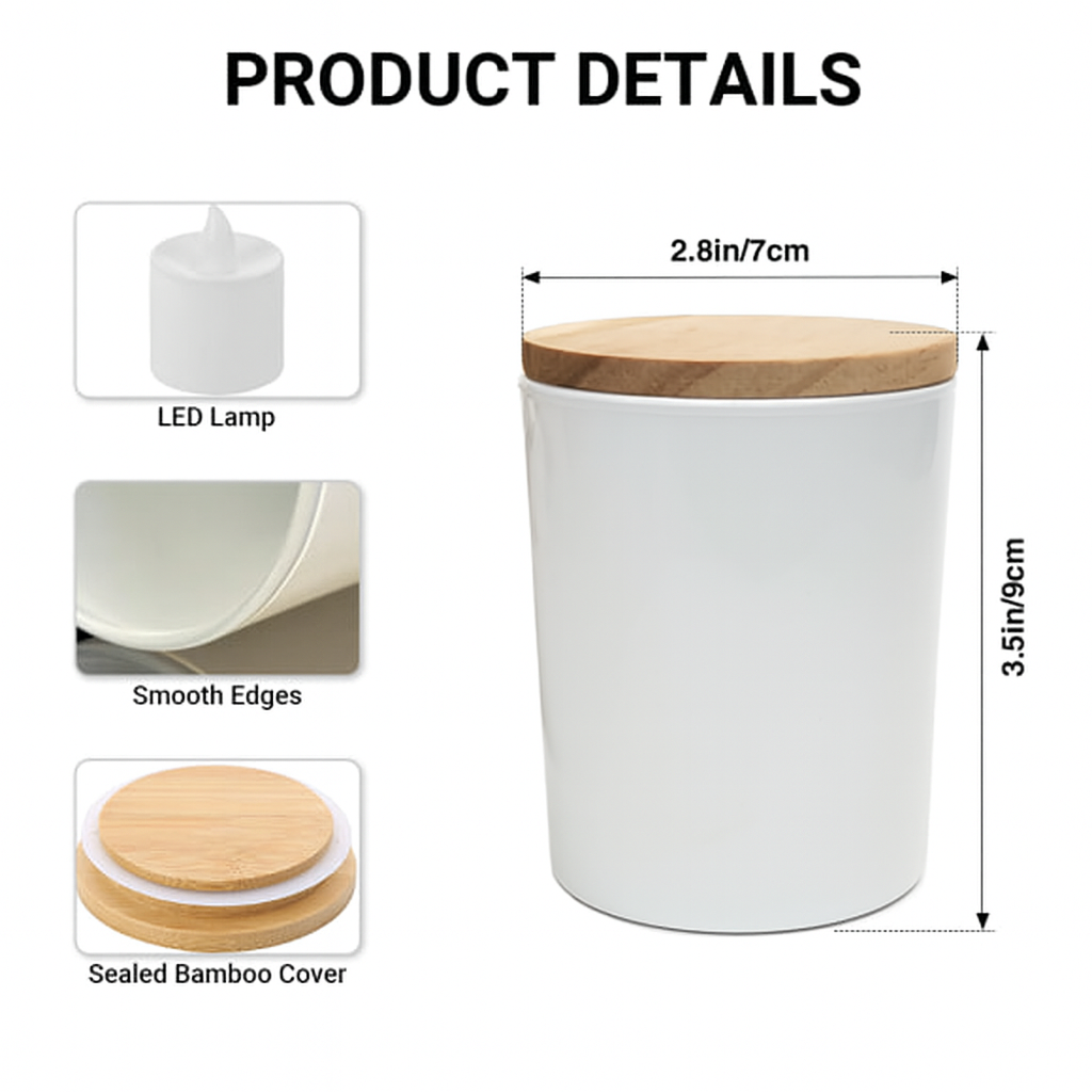 - Matériau : verre blanc de qualité supérieure avec un couvercle sécurisé en bambou naturel