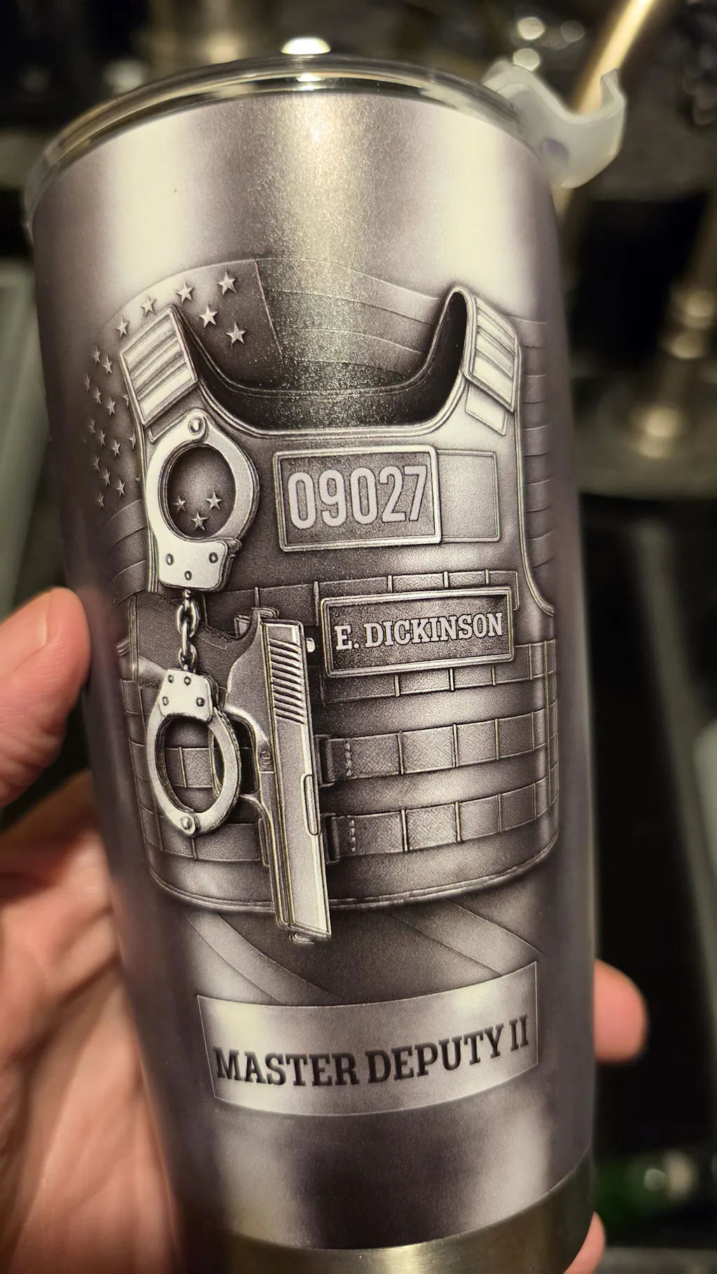 My favorite security guard loves his new tumbler. It's perfect size for his truck and hand. Thank you!