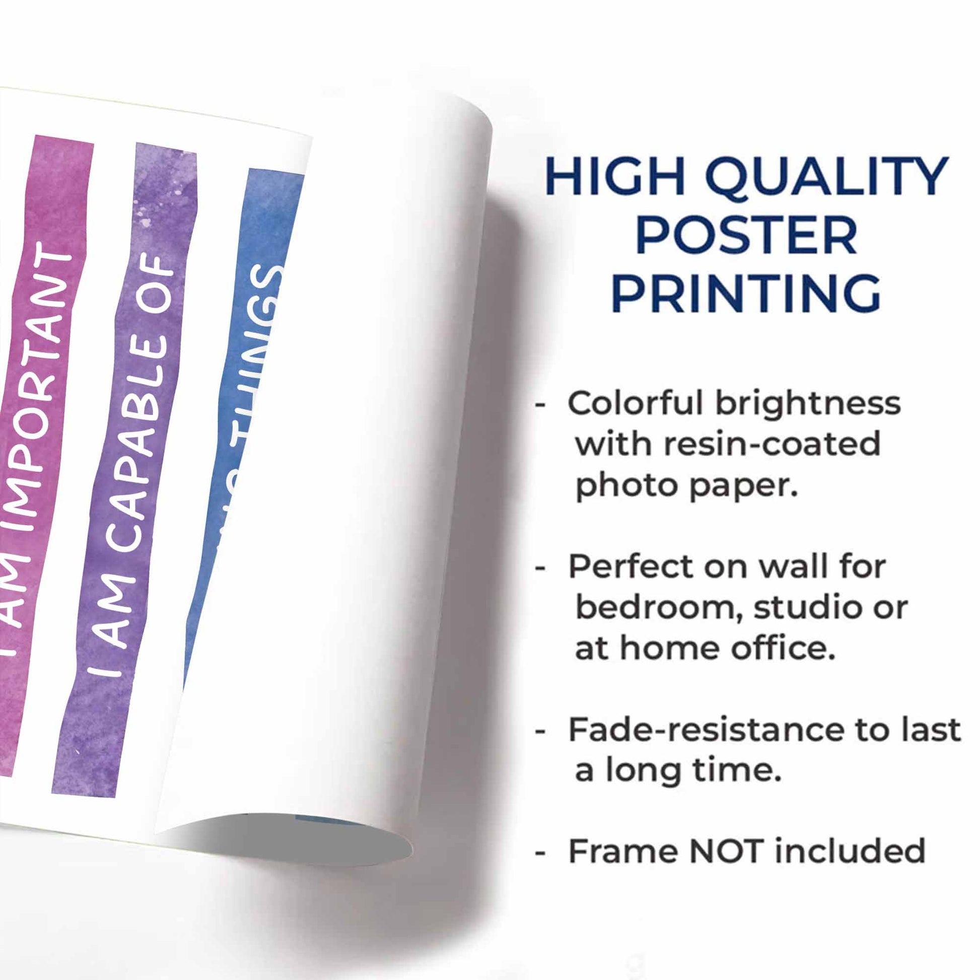 Showcase photos, artwork, or quotes in stunning detail with our custom vertical poster. Printed on professional resin-coated photo paper with a satin finish, it delivers rich color, deep blacks, and razor-sharp resolution—built to last for decades indoors.