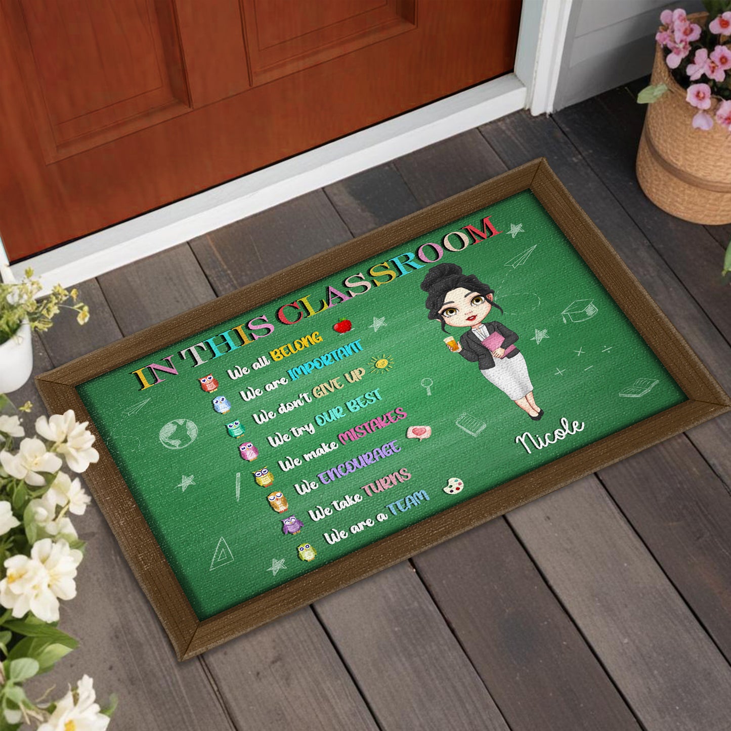 In This Classroom We All Belong, Teacher and School Icons, Personalized Custom Doormat, Gift for Teachers