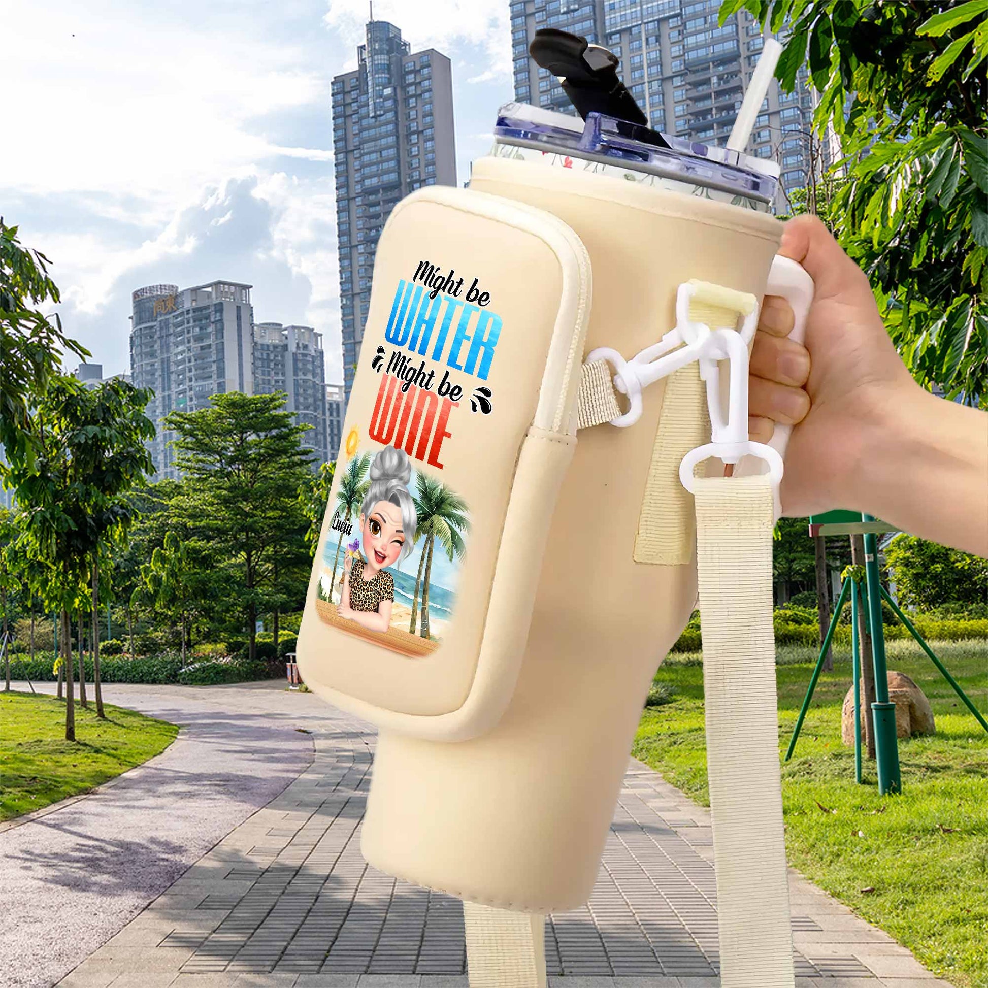 Might Be Water Might Be Wine Beach Design, Custom Water Bottle Carrier Bag, Gift For Beach and Wine Lovers