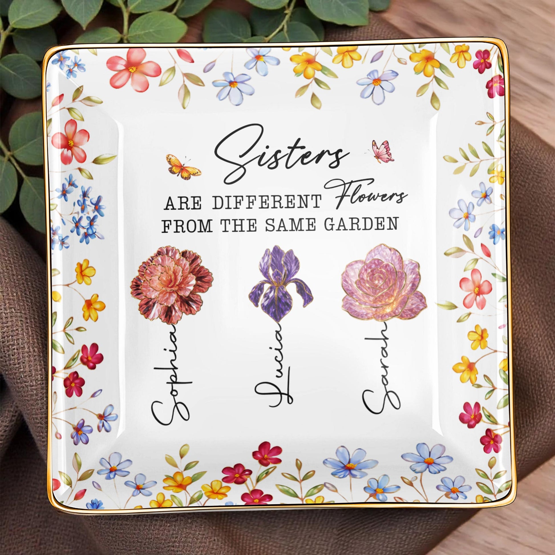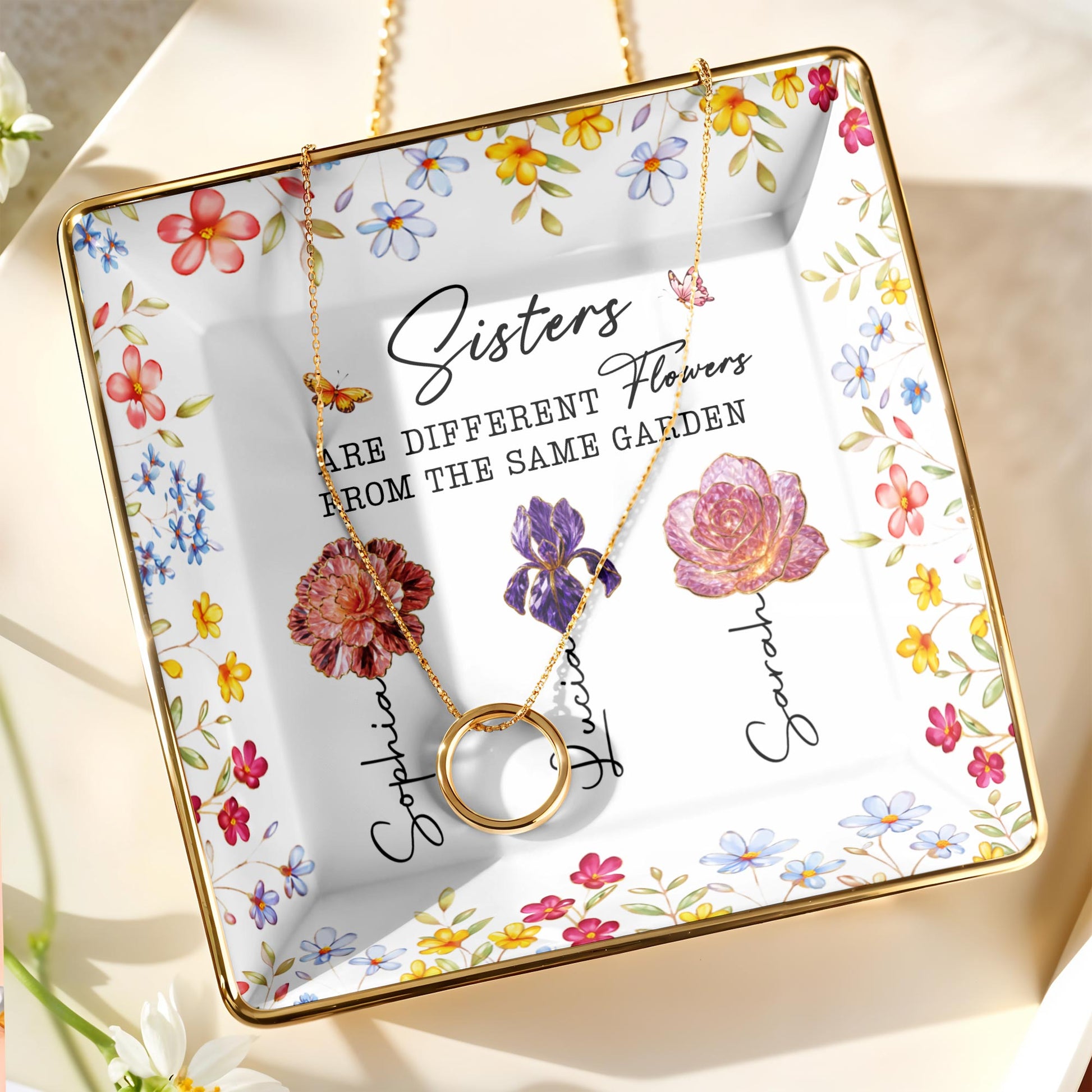 Sisters Are Different Flowers From The Same Garden - Personalized Custom Jewelry Dish, Ceramic Dish, Square Shape - BST510_SCRF