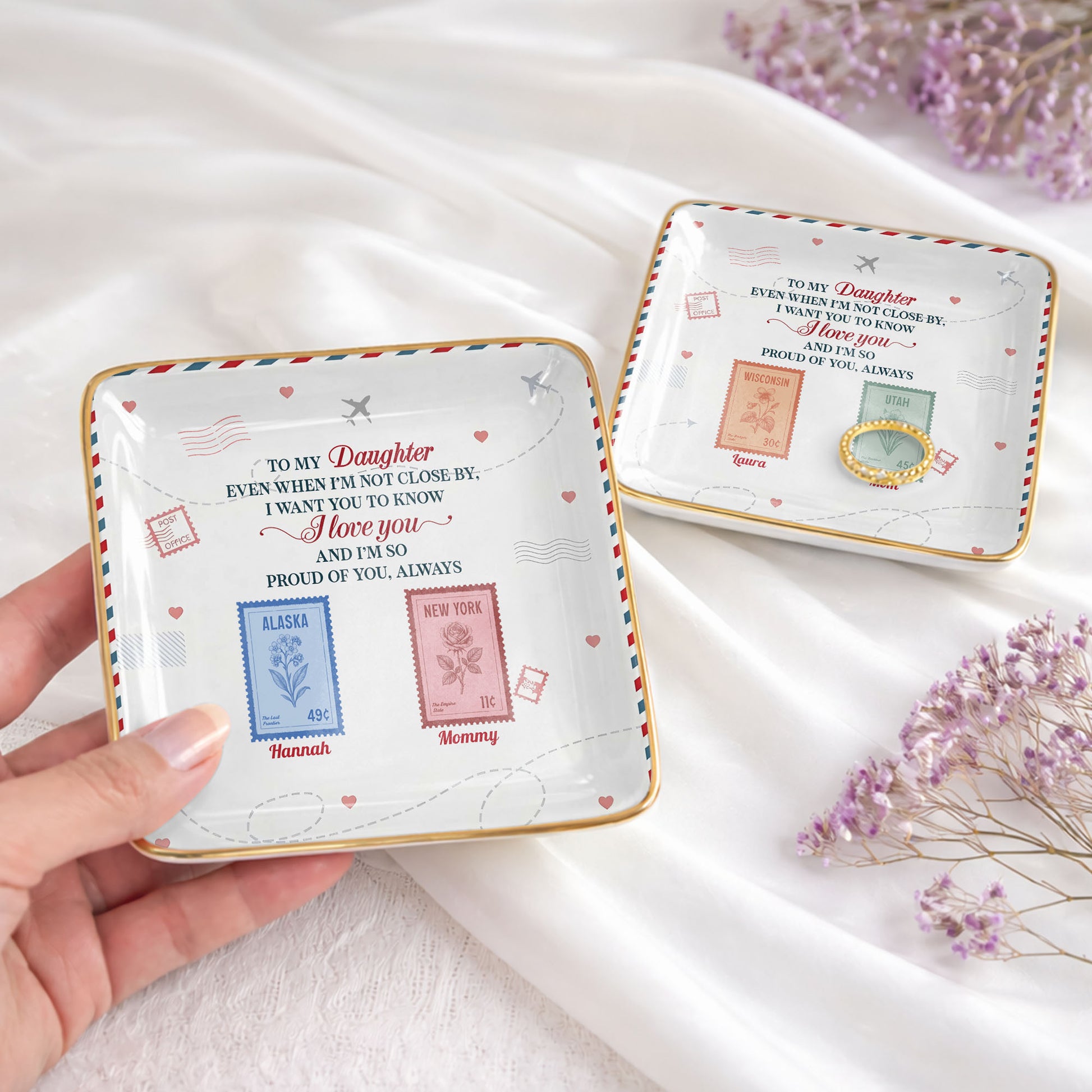 To My Daughter, Love And Pride Postage Stamps Design, Personalized Jewelry Dish, Gift For Daughters