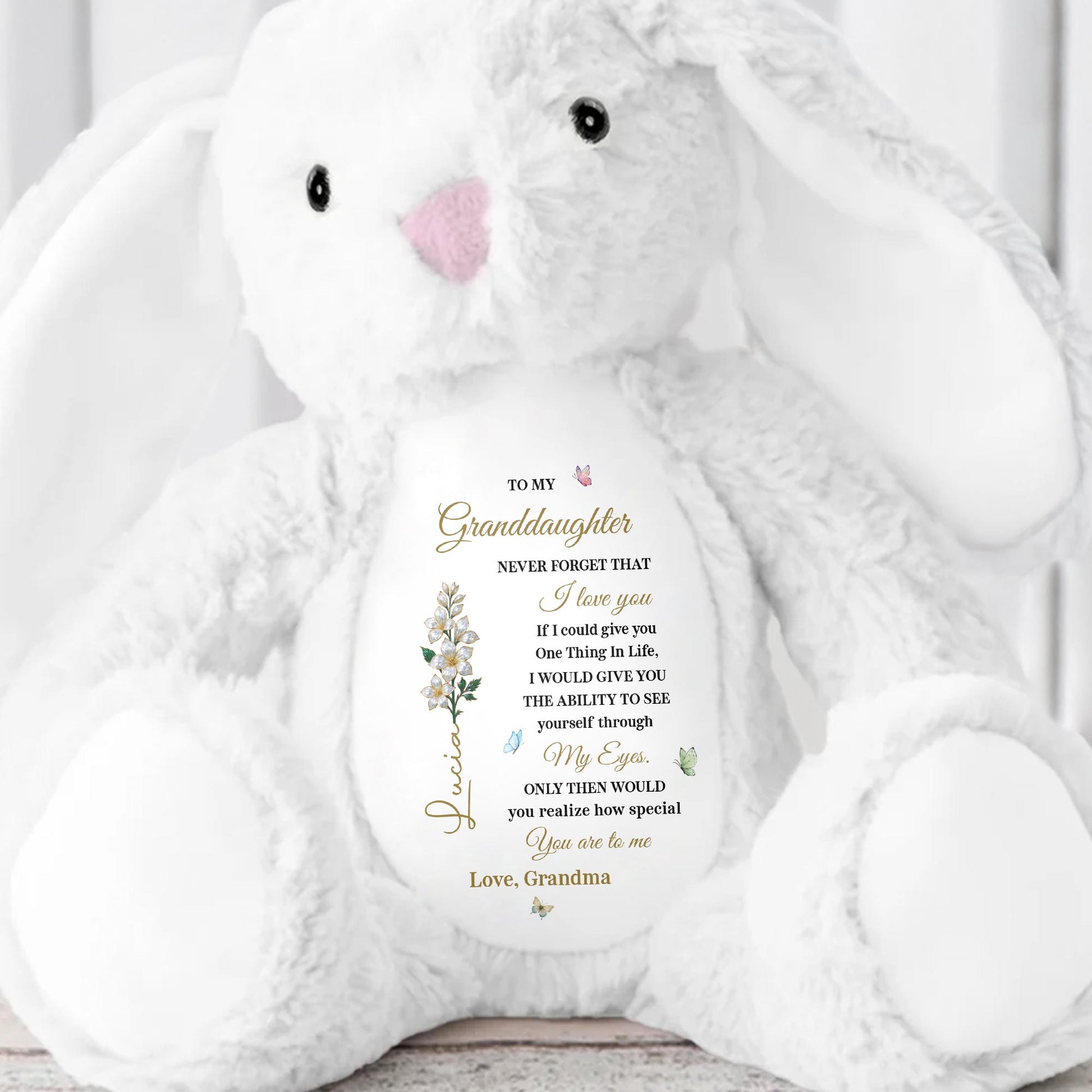 To My Granddaughter, Love Grandma, Flowers Bunny - Personalized Stuffed Bunny - GDT607_BUN
