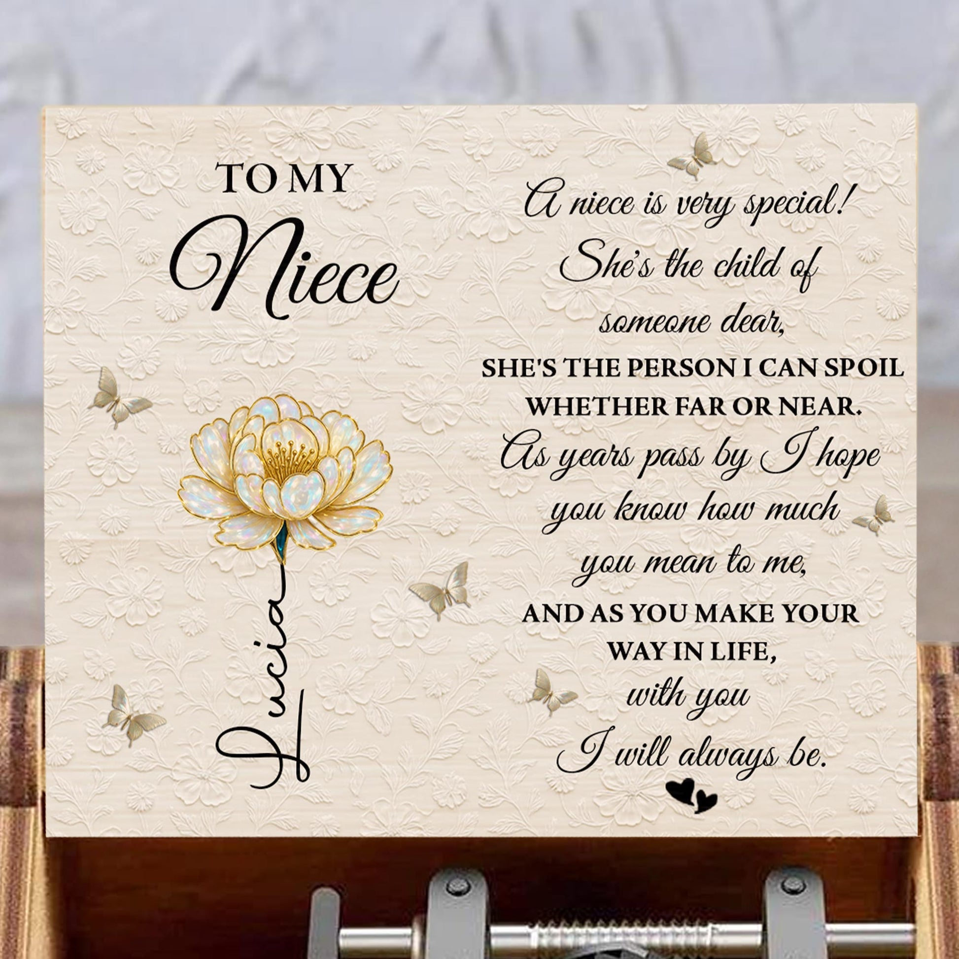 To My Niece, Flower And Butterflies Music Box - Custom Music Box With "You Are My Sunshine" Tune - NCE015_MZB