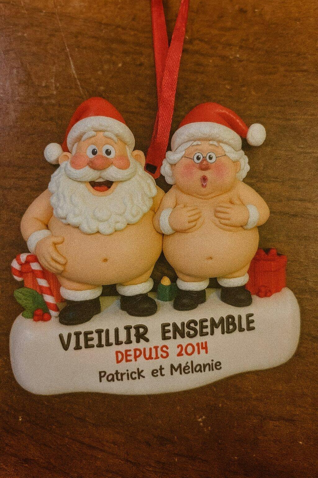 Cet ornement nous a fait éclater de rire. Les détails sont adorables et l’idée de “vieillir ensemble” est juste parfaite.
