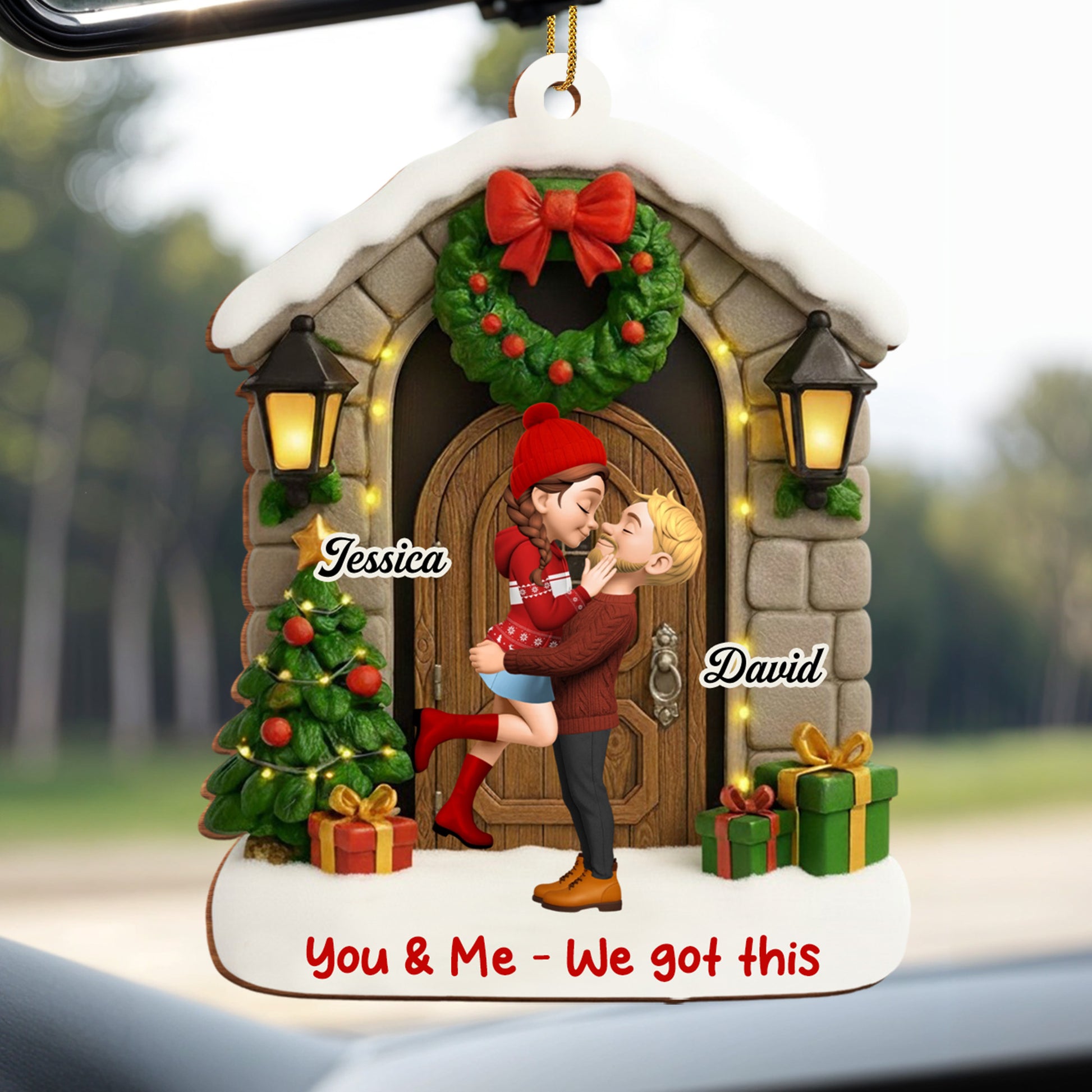 You & Me - We Got This, Christmas Wreath And Gifts, Custom Wood Ornament, Gift For Couples