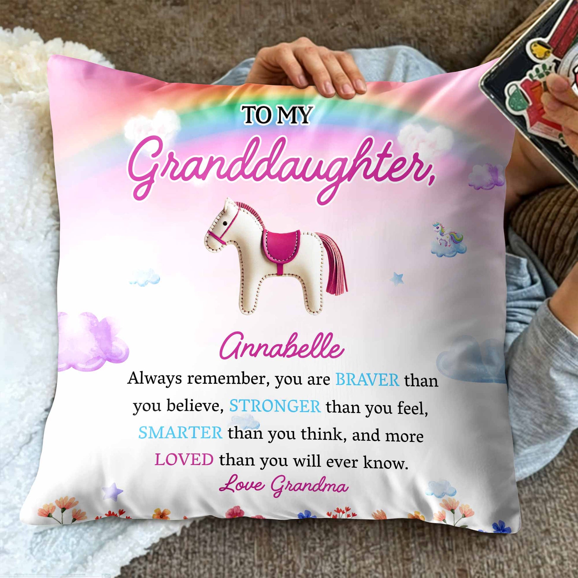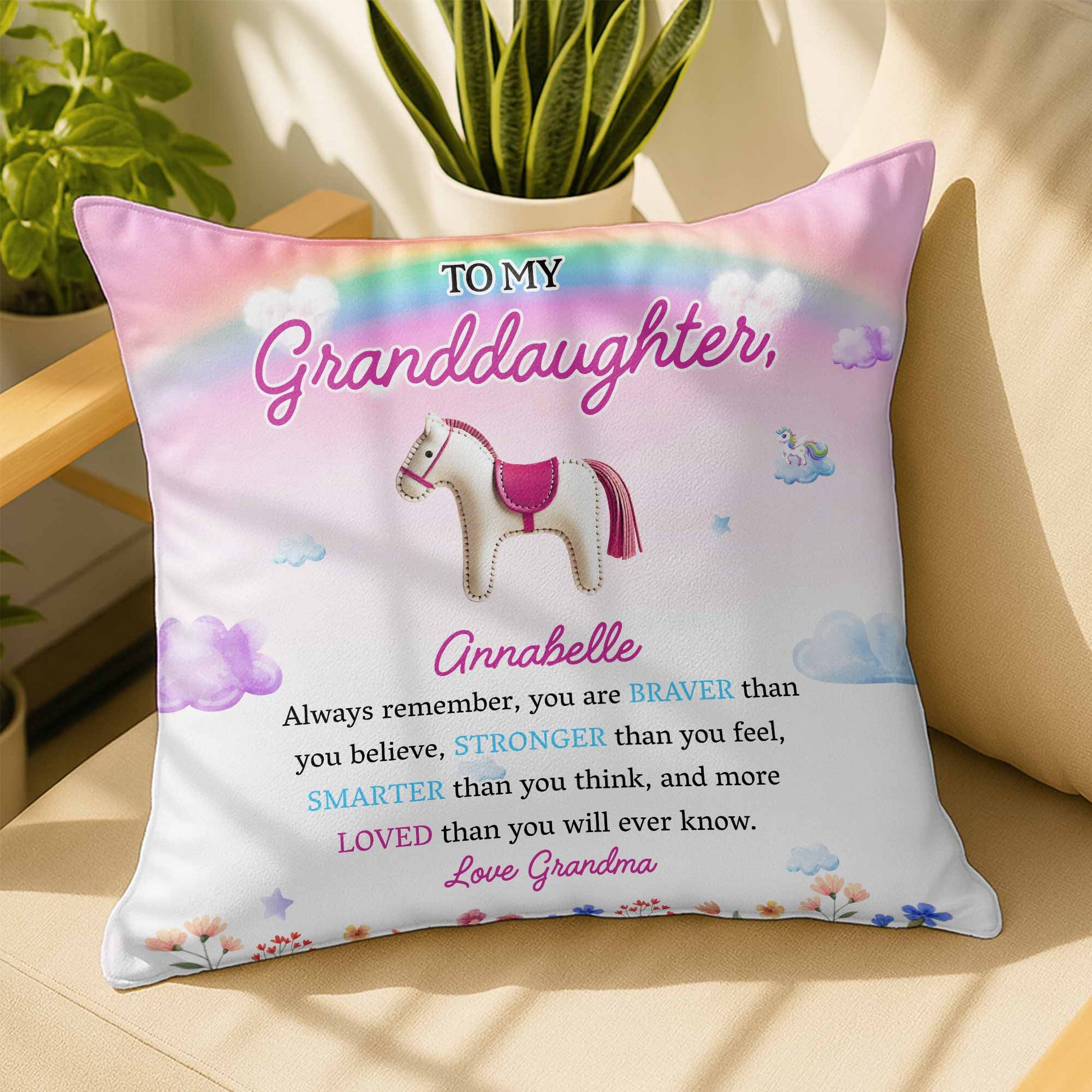 Braver, Stronger, Smarter, And Loved - Personalized Custom Pillow - Gift For Granddaughter