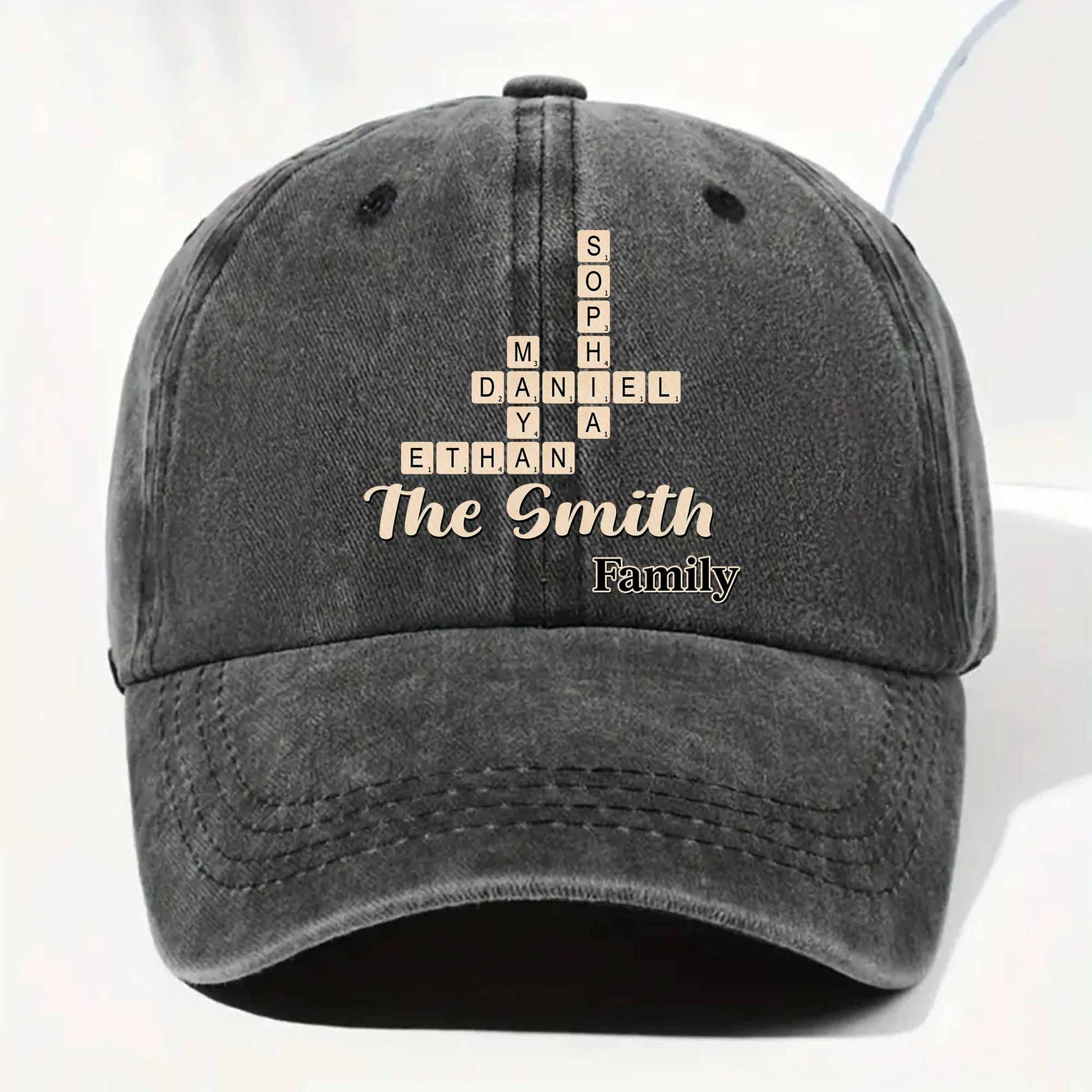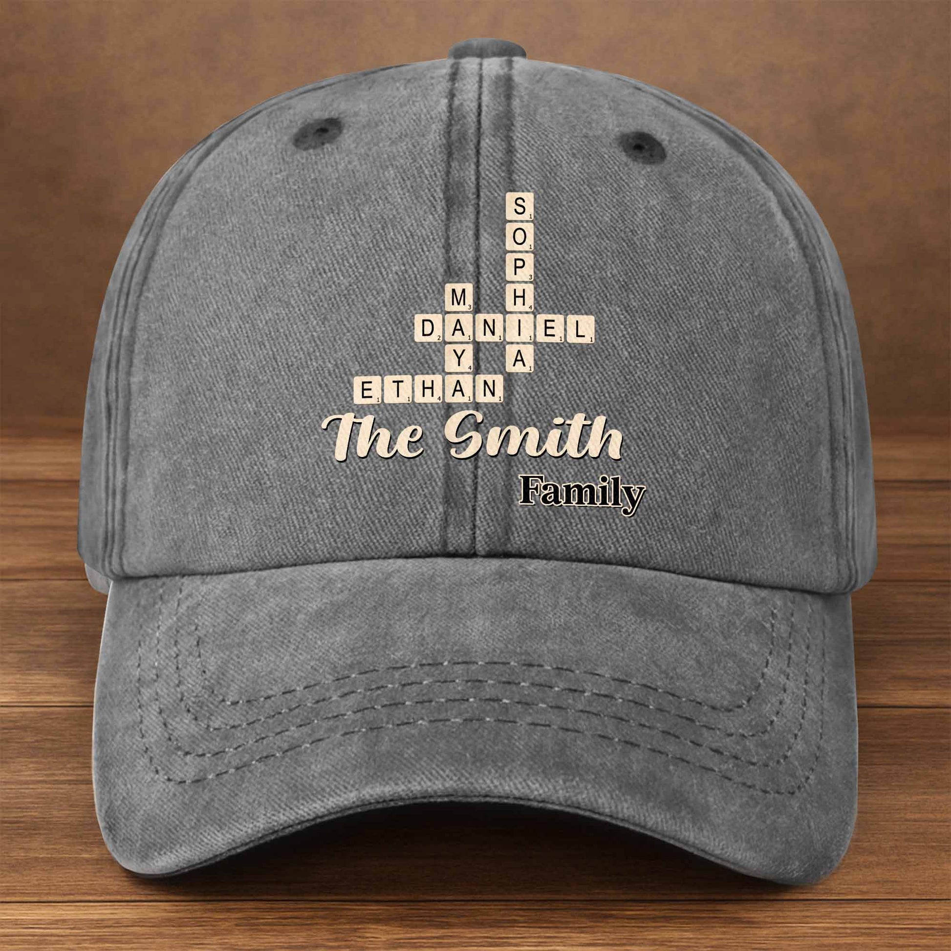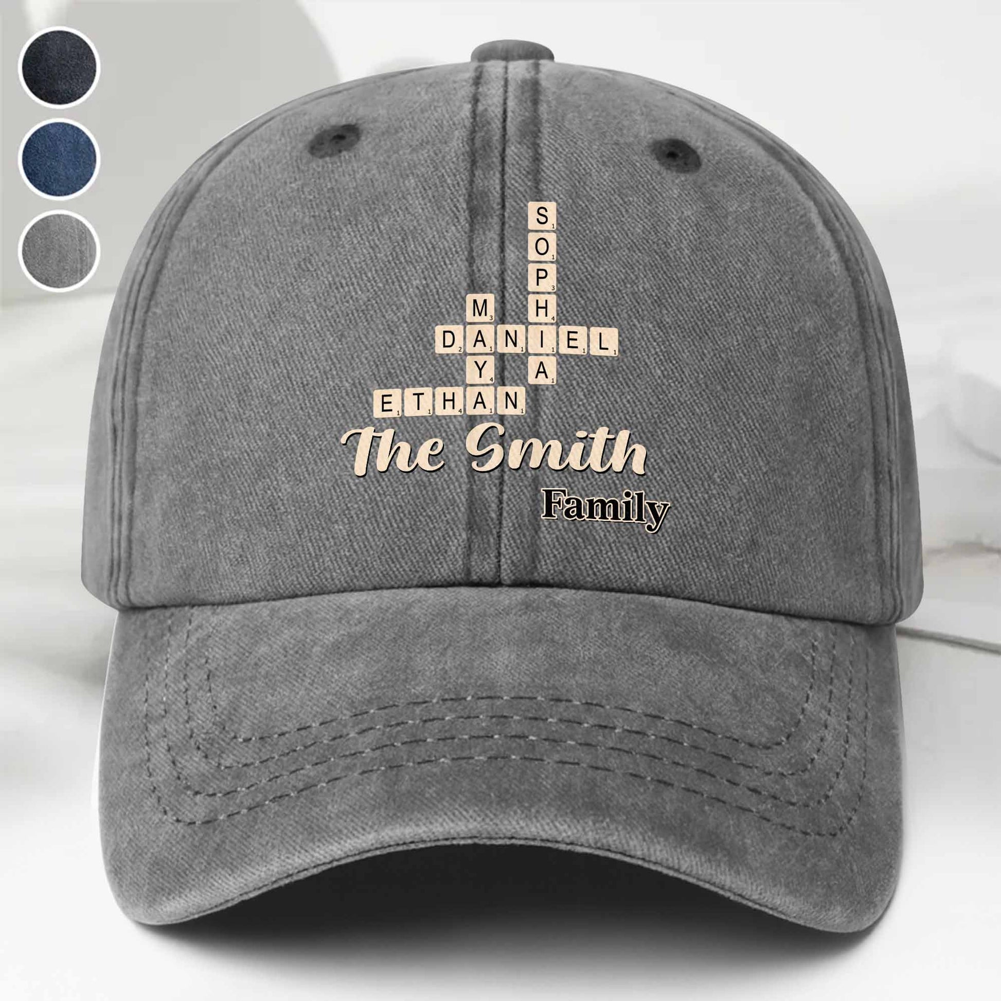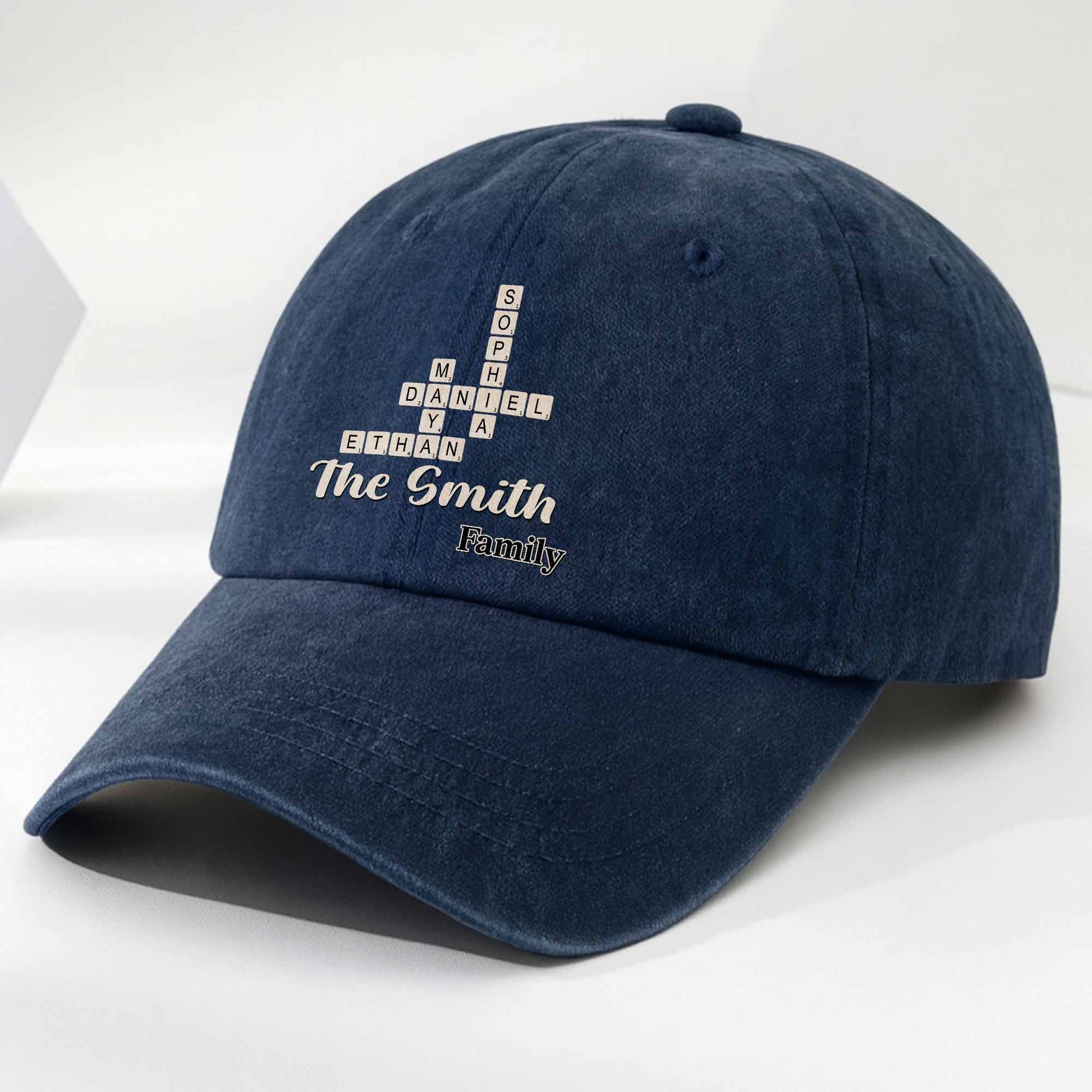 Celebrate Your Unique Family Heritage Crossword Design Cap, Custom Washed Denim Cap, Gift For Family