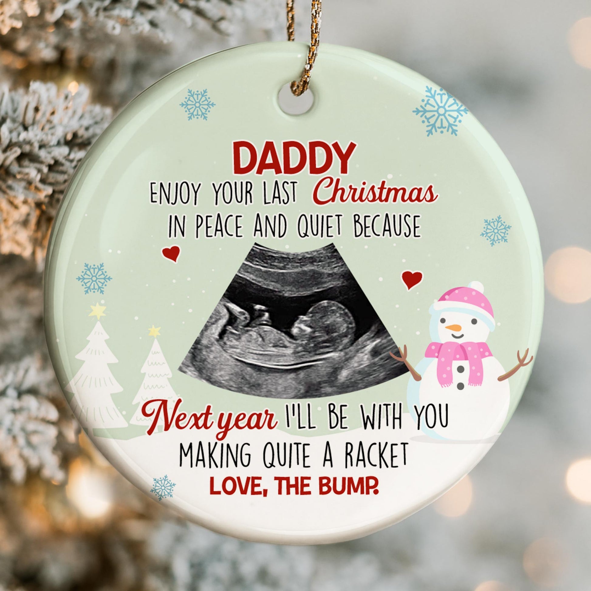 Daddy Enjoy Your Last Christmas In Peace And Quiet, Ultrasound - Personalized Custom Ceramic Ornament With Round Shape - KID307_RCE