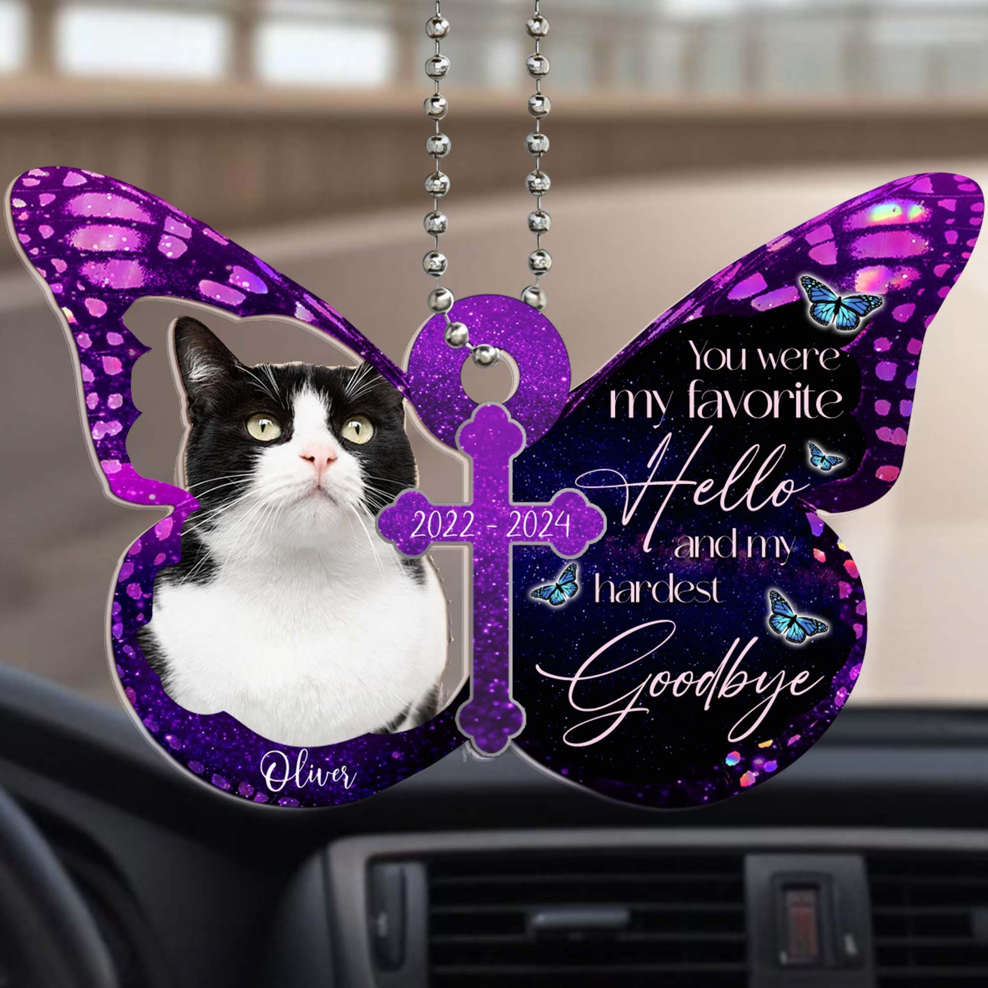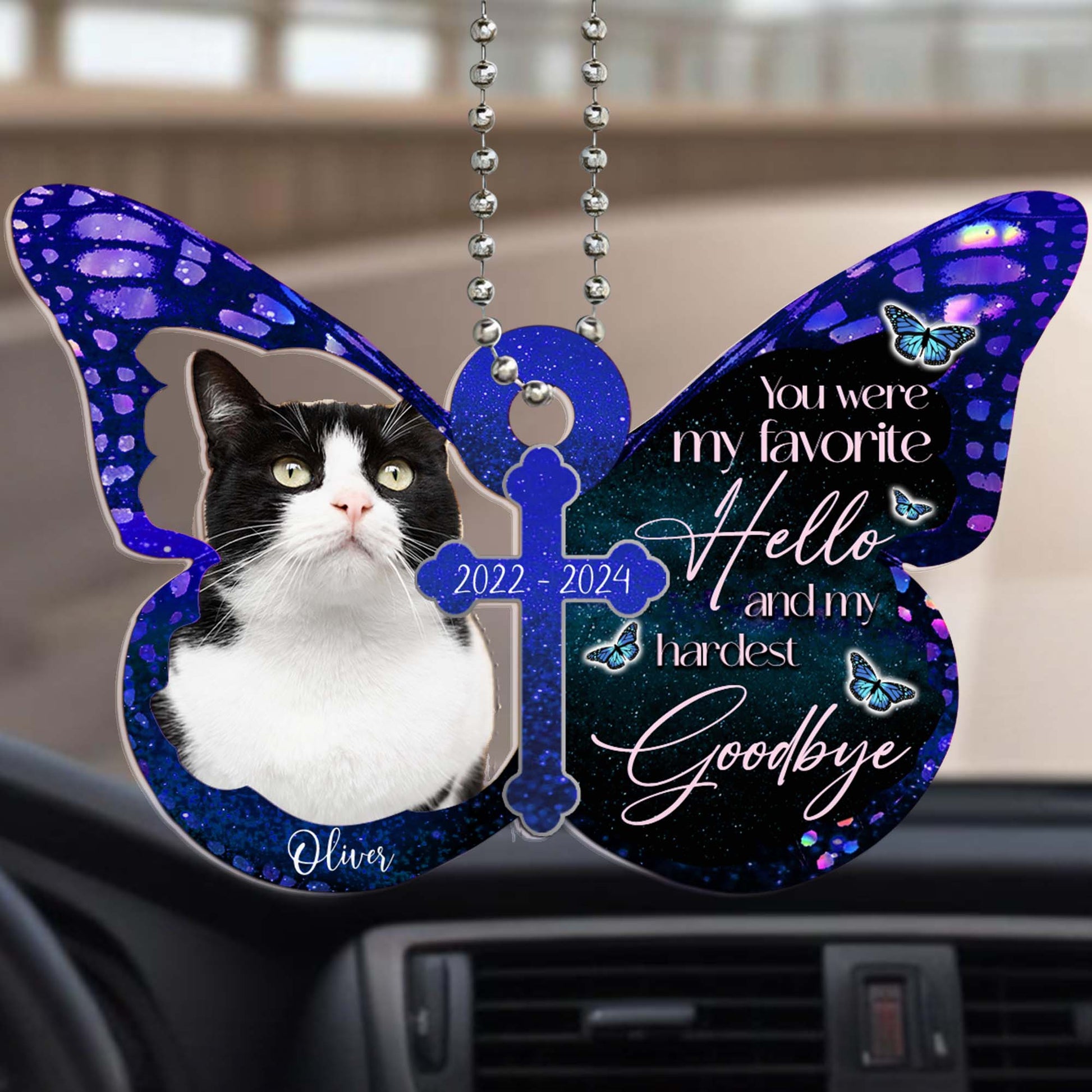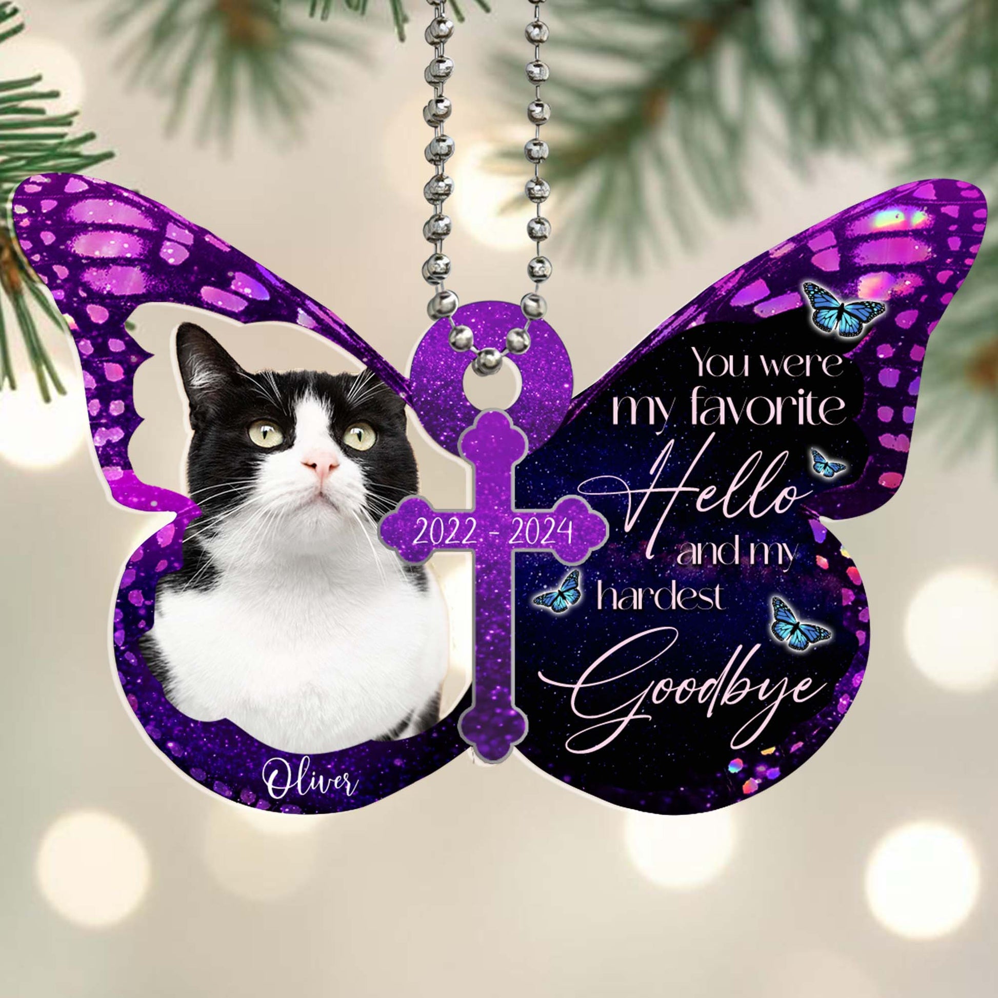 Favorite Hello Hardest Goodbye Cat Memorial Ornament - Personalized Custom Acrylic Ornament, Car Ornament - PET022_HGO