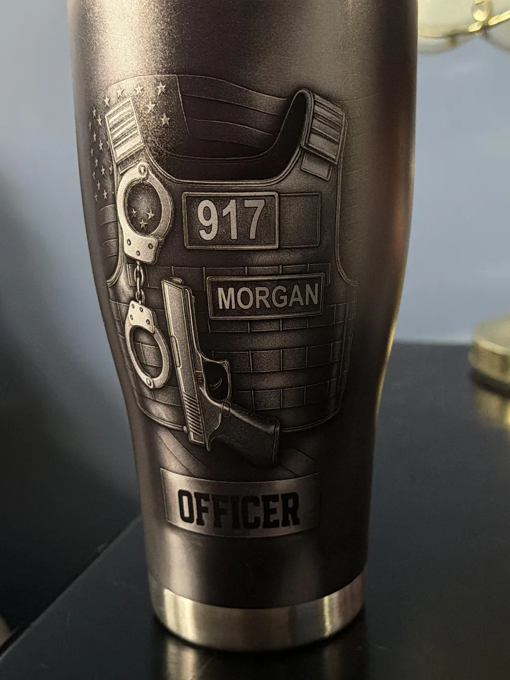 My favorite security guard loves his new tumbler. It's perfect size for his truck and hand. Thank you!