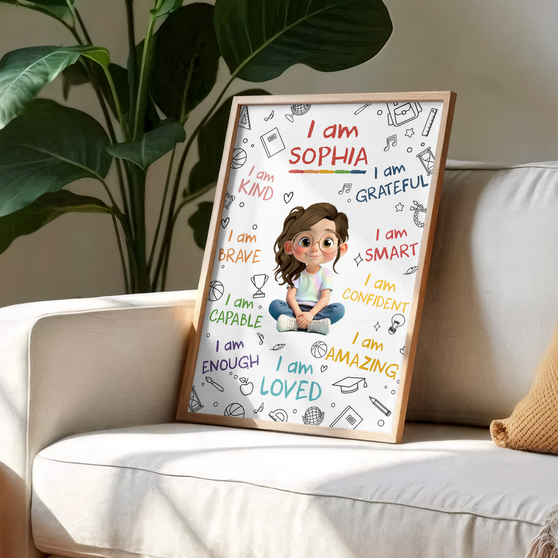 I Am Kind, Brave, Capable, Enough, Loved Inspirational Words - Personalized Custom Vertical Poster - KID355_VPOS