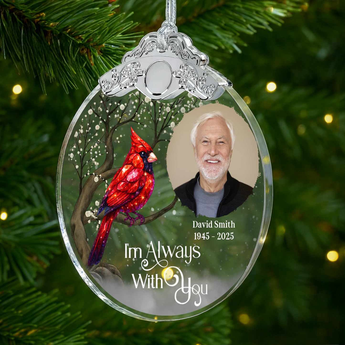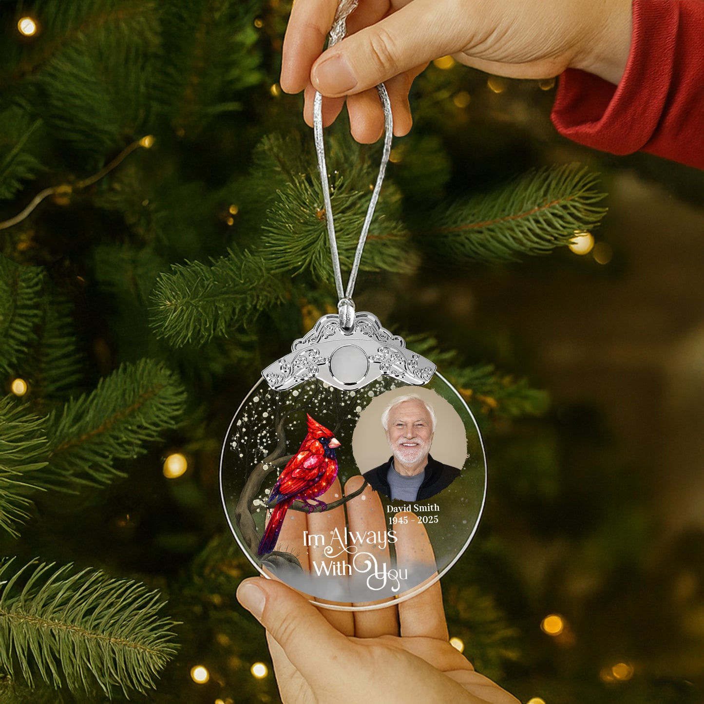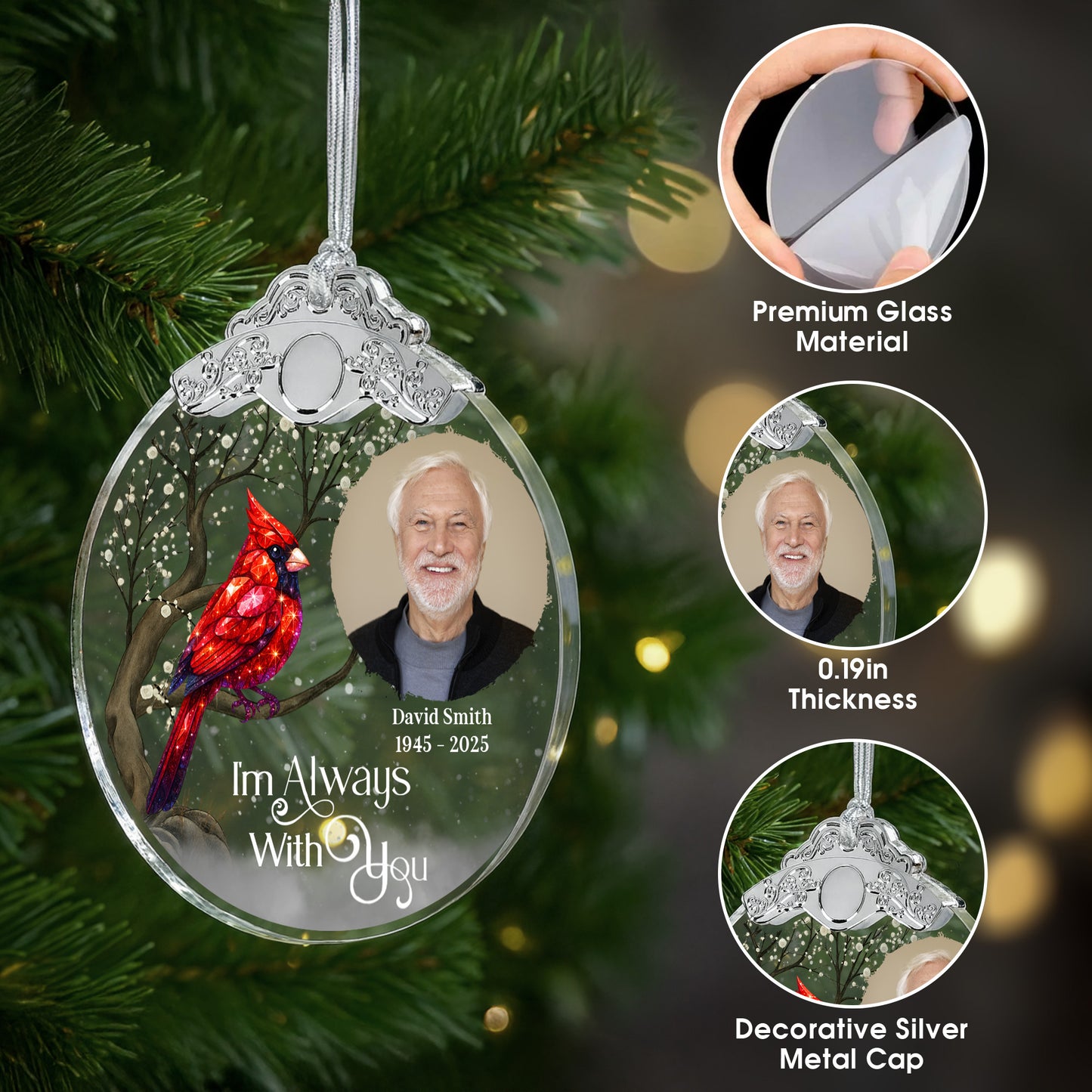 I'm Always With You With Cardinal And Snow,Personalized Glass Ornament,Gift For Family And Loved Ones