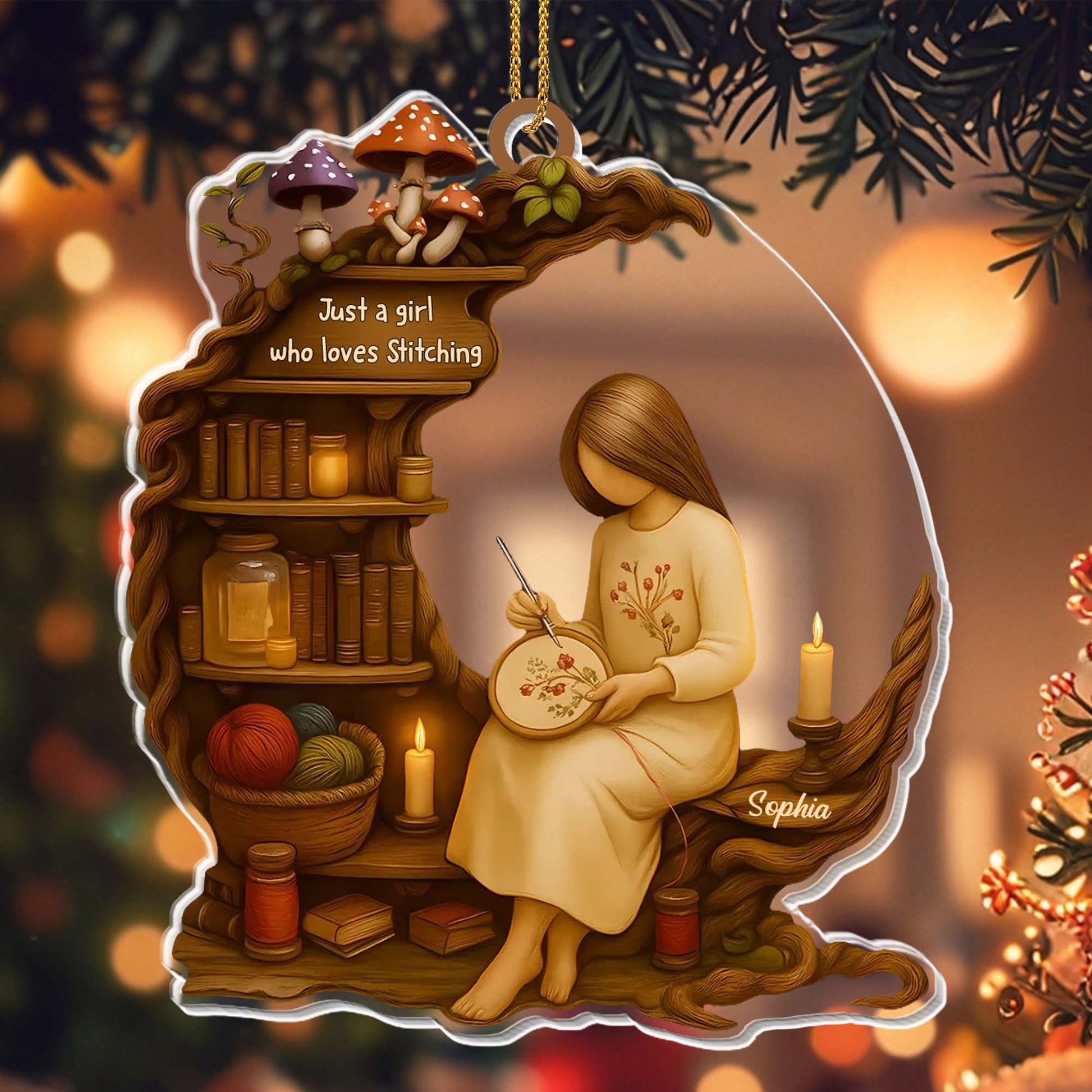 Just A Girl Who Loves Stitching, Personalized Acrylic Ornament, Gift For Bakers And Crafters