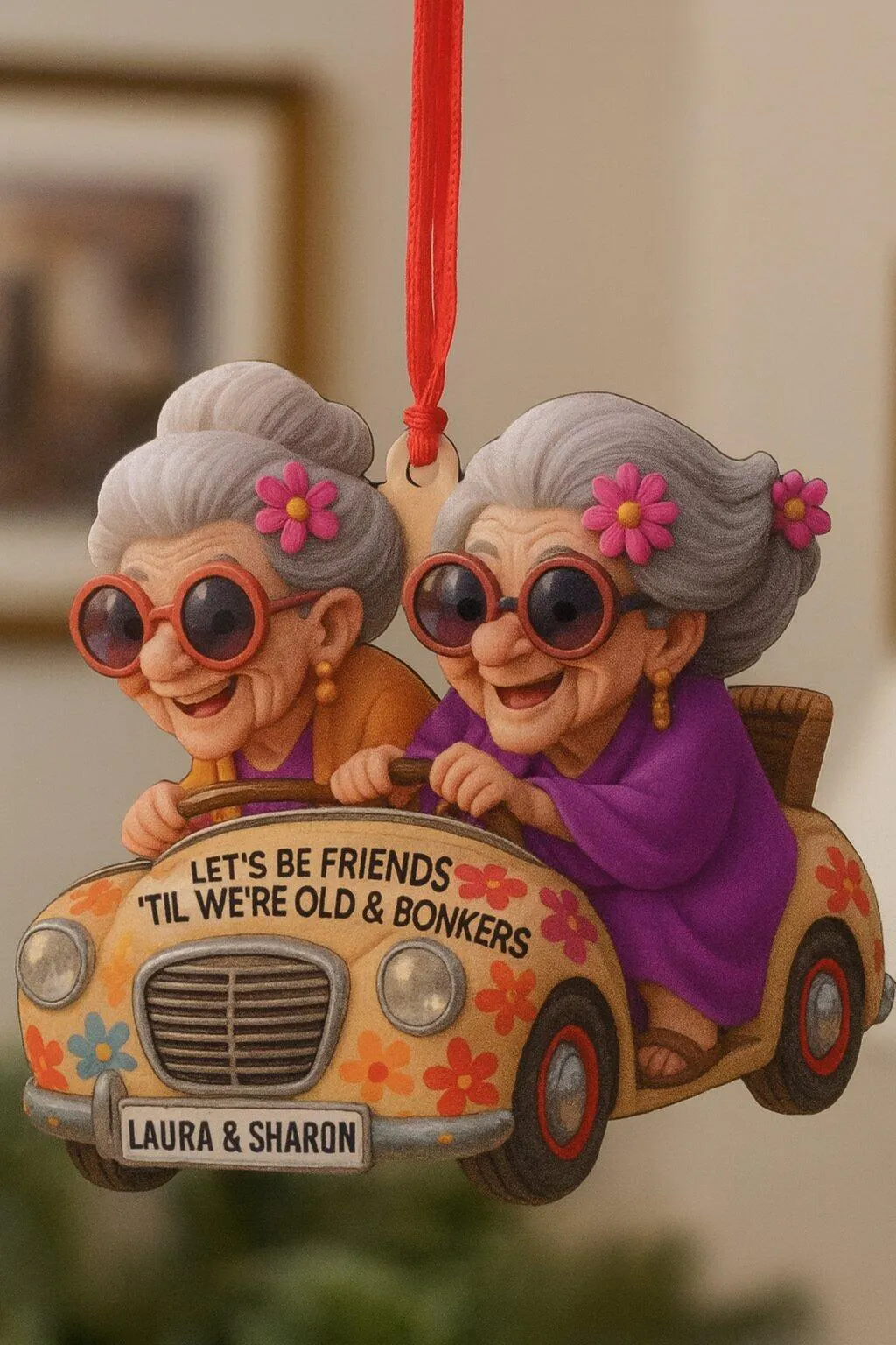 Let's Be Friends 'Til We're Old And Bonkers, Elderly Women, Car, Personalized Double Layer Wood Ornament, Gift For Besties And Family