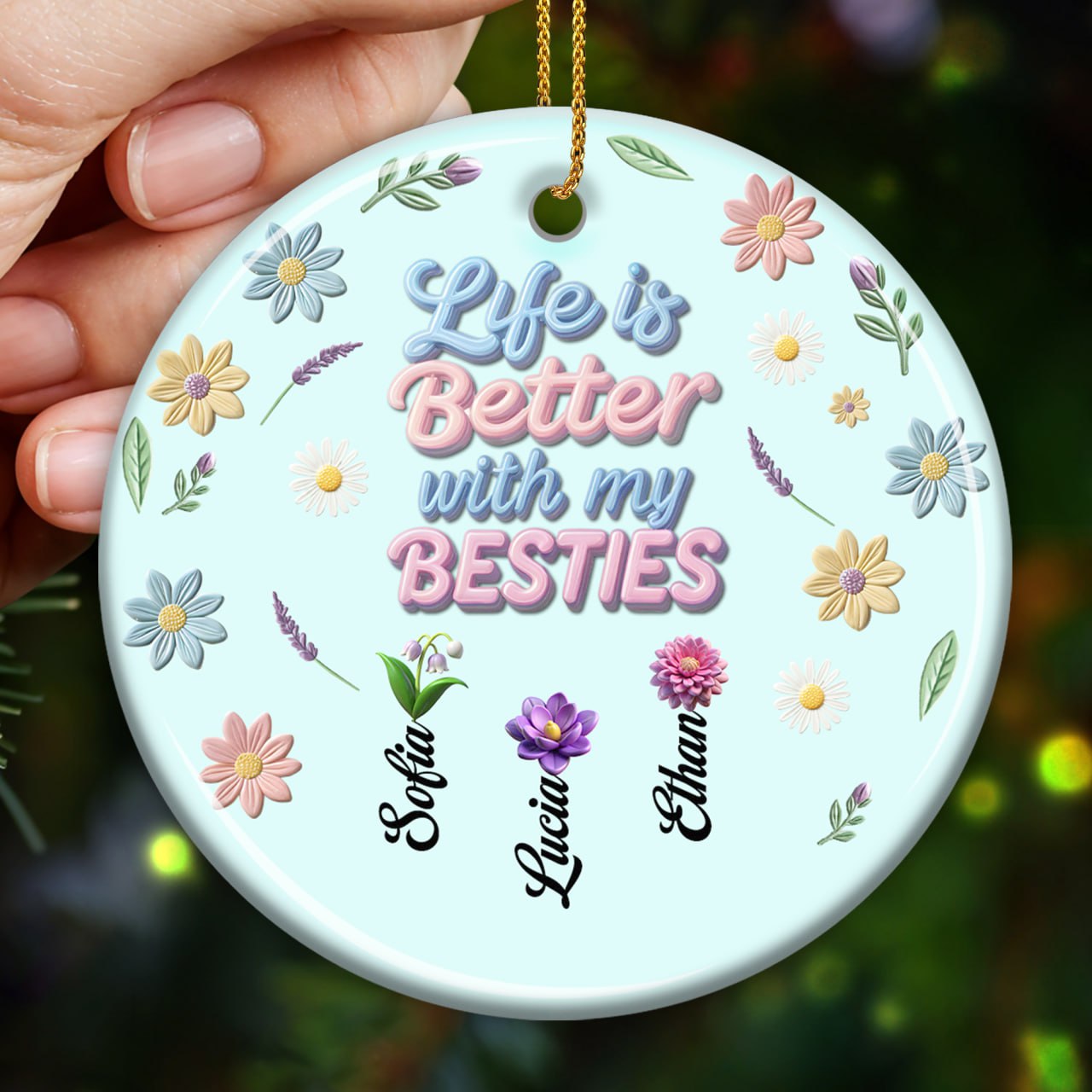 Life Is Better with My Besties, Beautiful Floral Design - Personalized Custom Ceramic Ornament With Round Shape - BST064_RCE