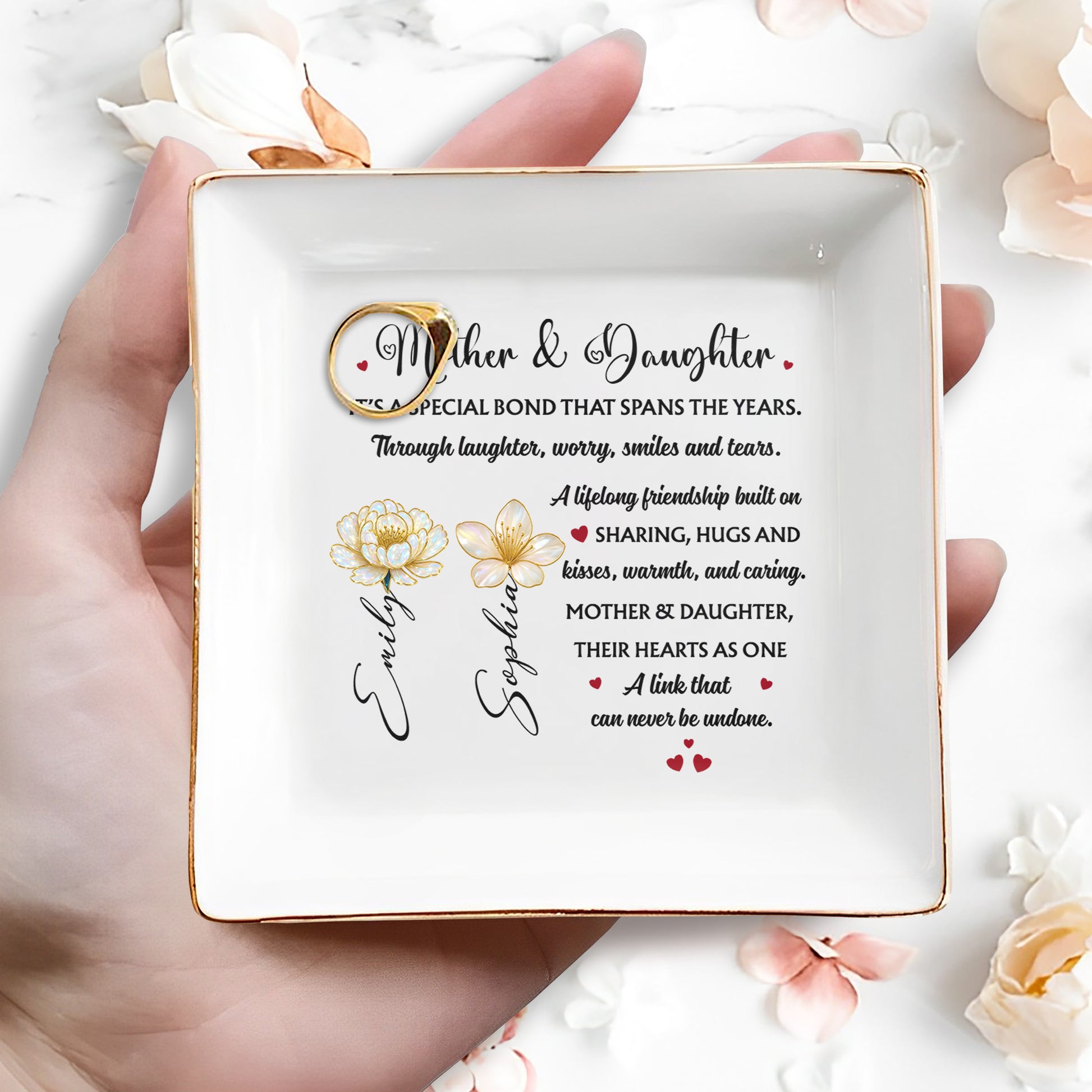 Mother & Daughter Special Bond With Flowers And Hearts, Personalized Ceramic Dish, Gift For Mother and Daughter