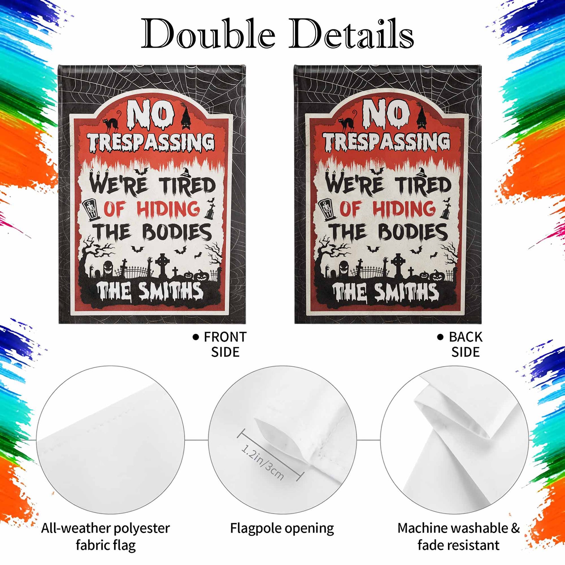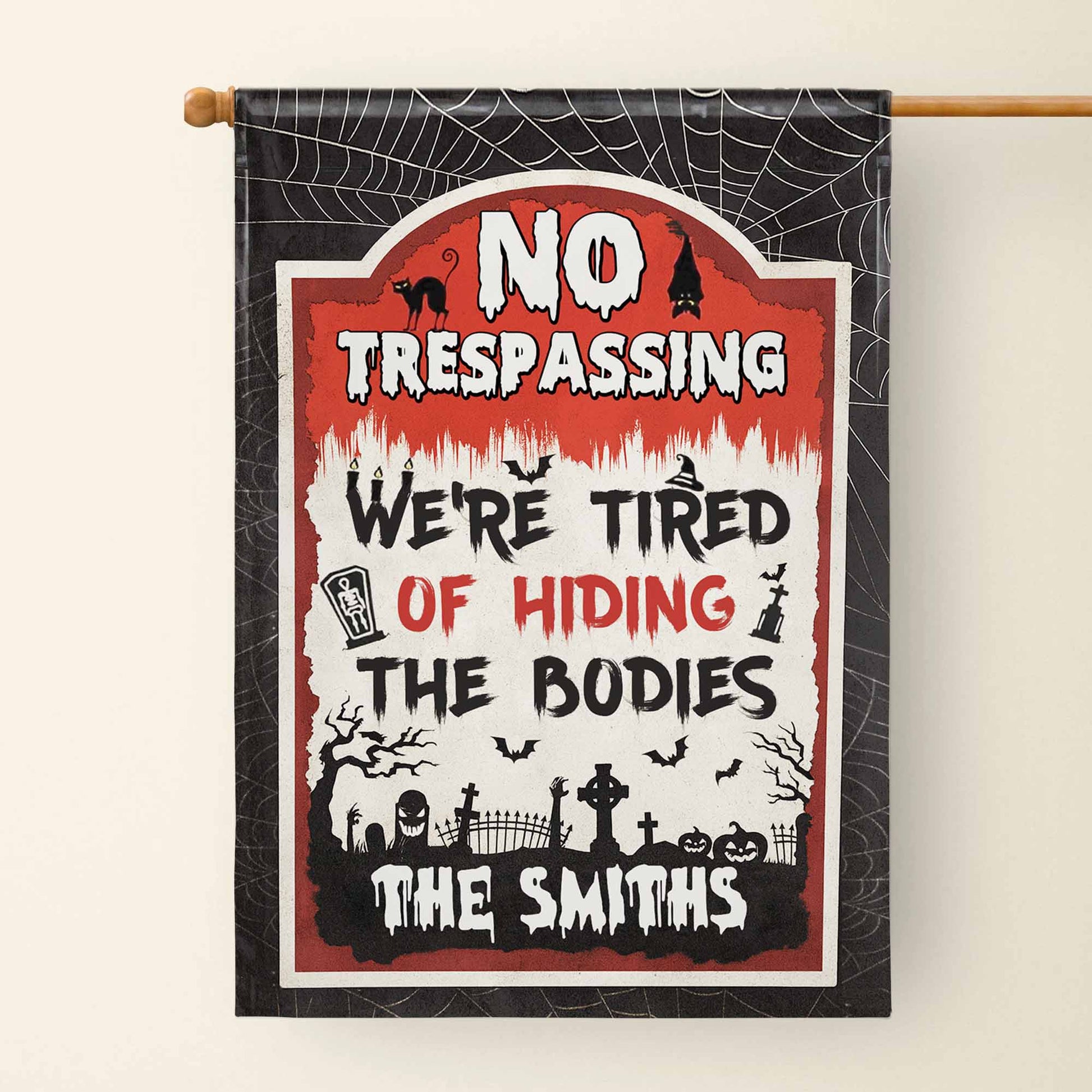 No Trespassing We're Tired Of Hiding The Bodies Flag With Grave, Cat, Personalized Flag, Gift For Home Owners