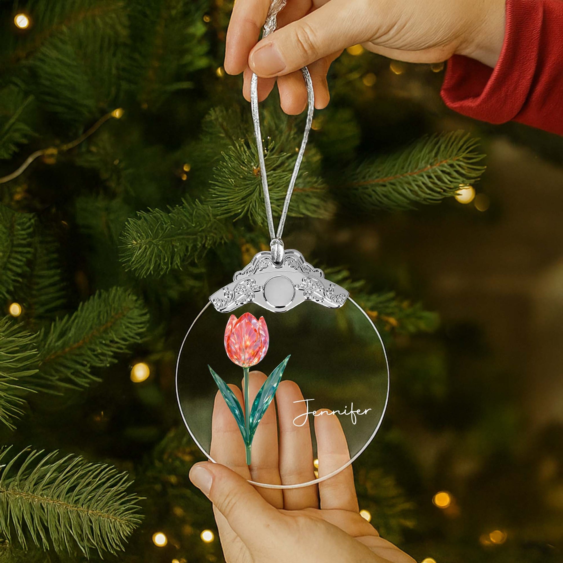 Personalize With Your Loved One's Name Beautiful Tulip - Personalized Glass Ornament With Silver Cap - DTG053_GOSICA