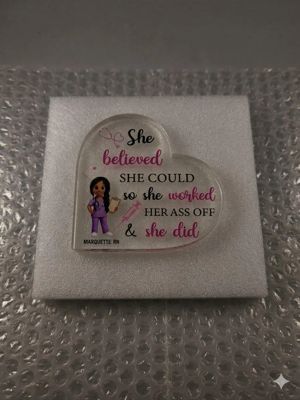 I bought 2 of these personalized for my 2 granddaughters. They came out beautiful and were packaged perfectly to prevent damage. I will give to them after July 4th vacation.. So so special. Thank you to this company for the idea. Both grands are going thru different stages of their life so this was the perfect time for something like this!