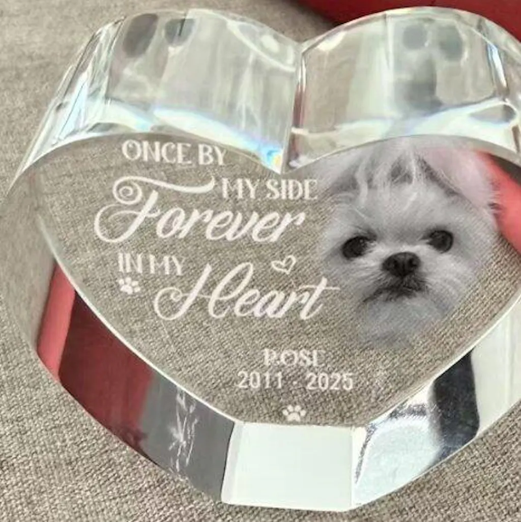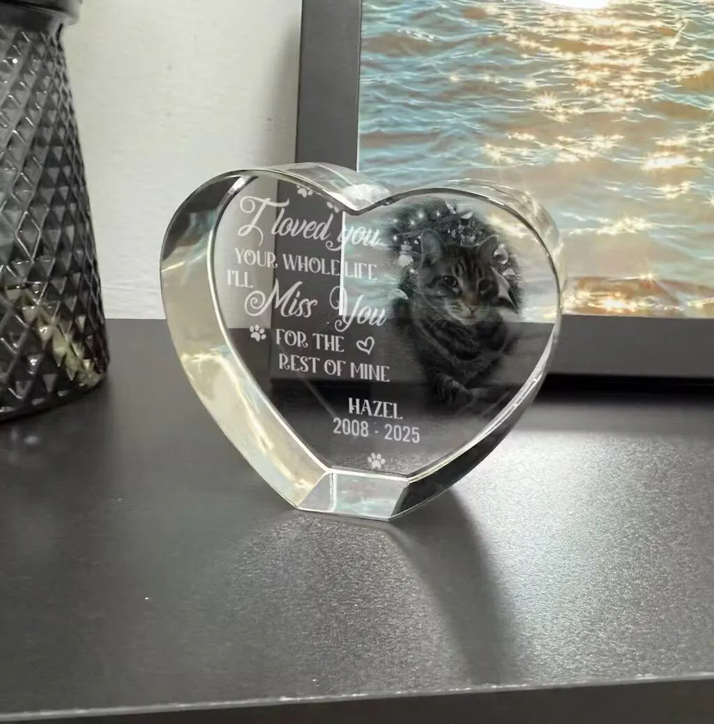 Celebrate love and memories with timeless elegance using our Personalized Crystal Heart. Crafted from durable K9 crystal and printed with your custom design, this striking piece is the perfect keepsake to showcase your most cherished moments in a truly captivating form.
