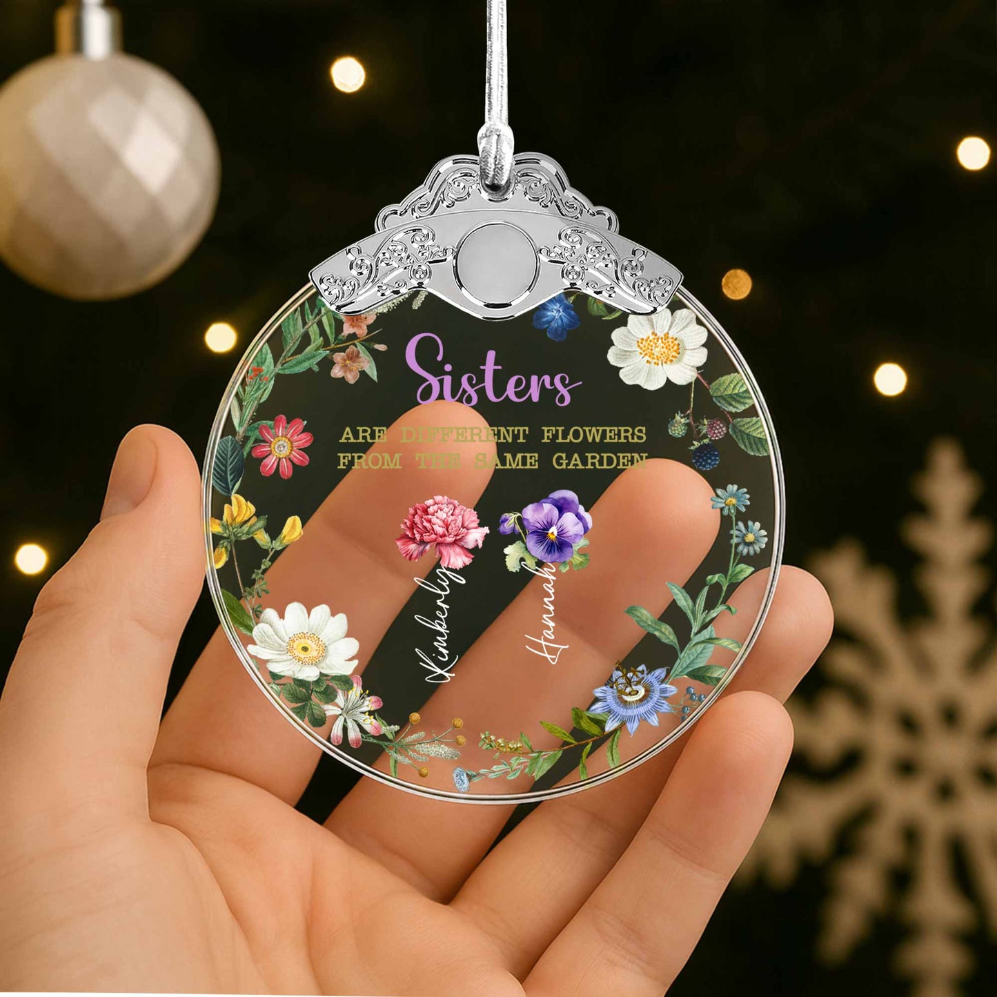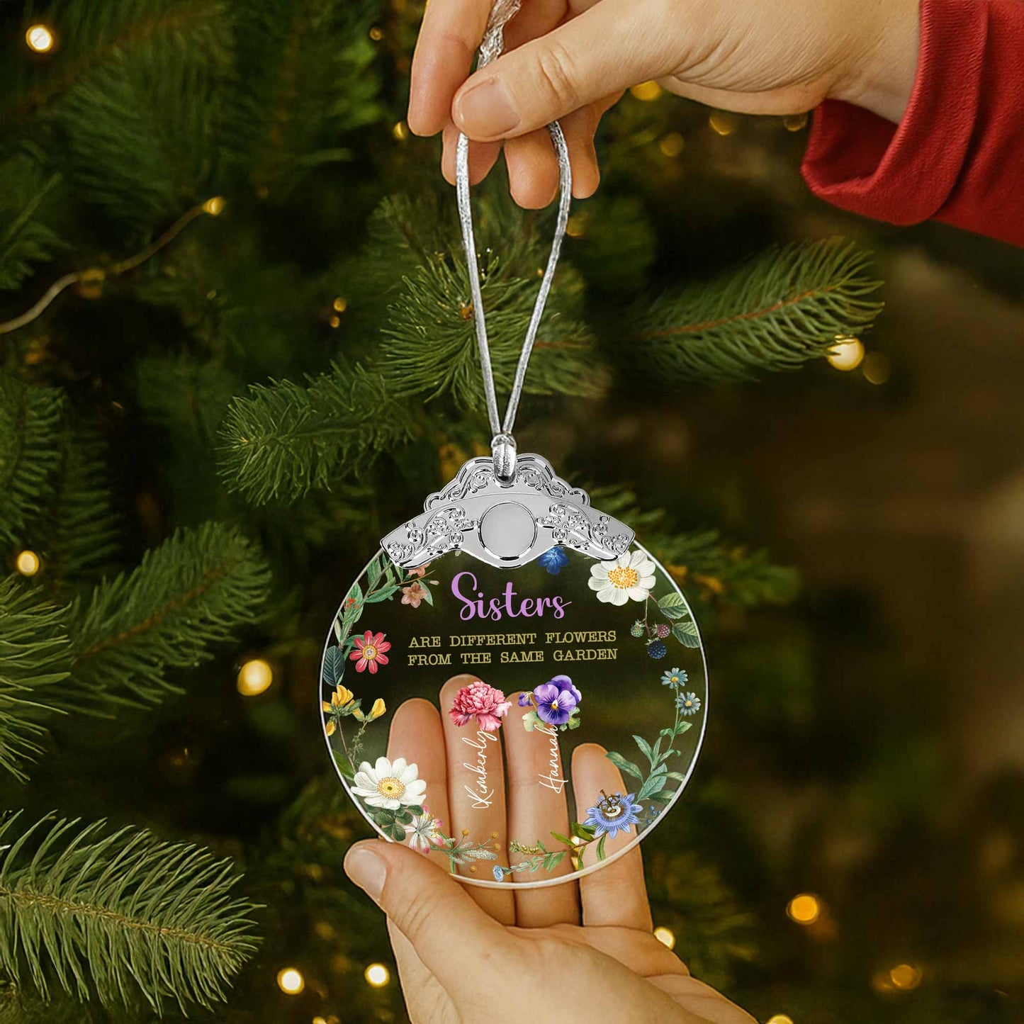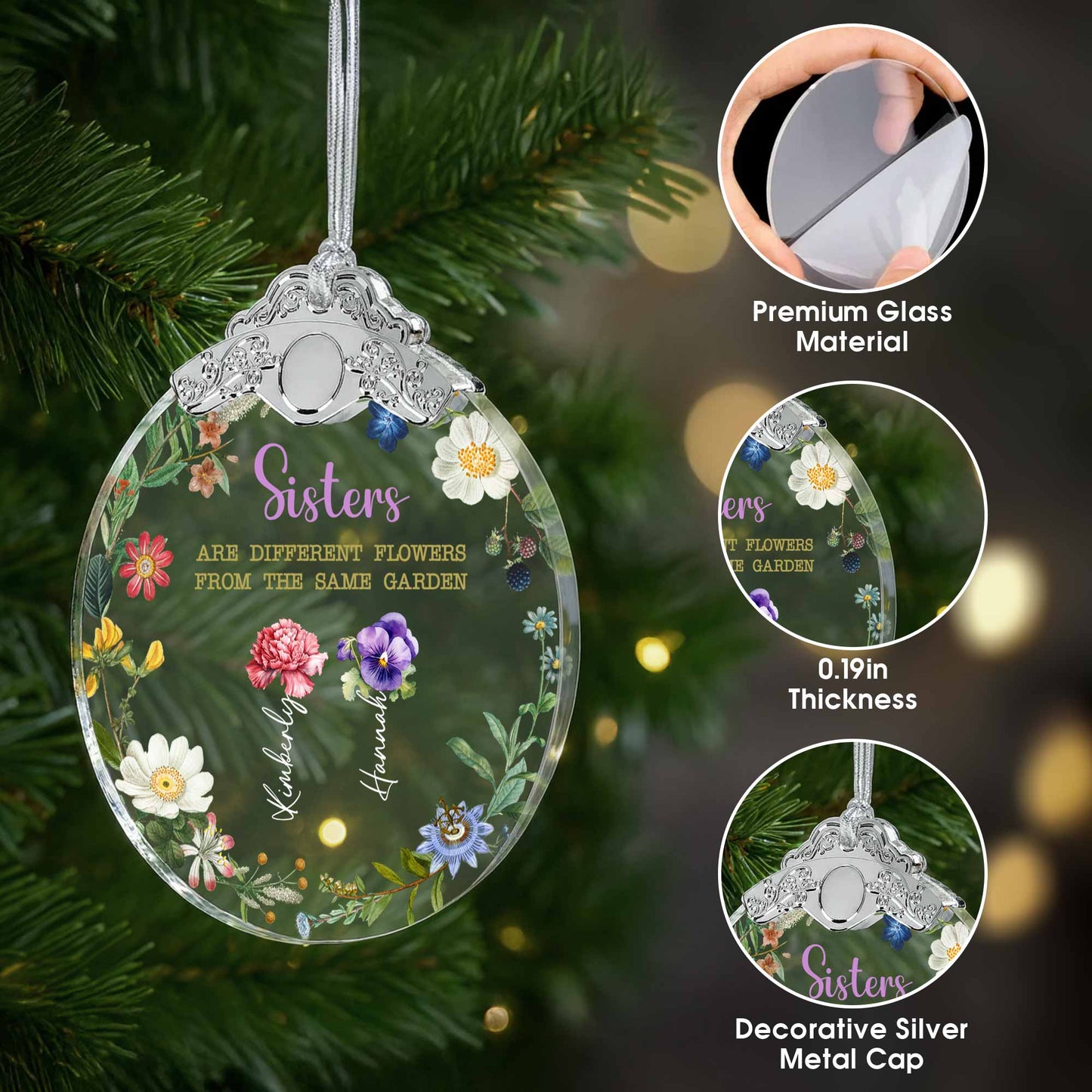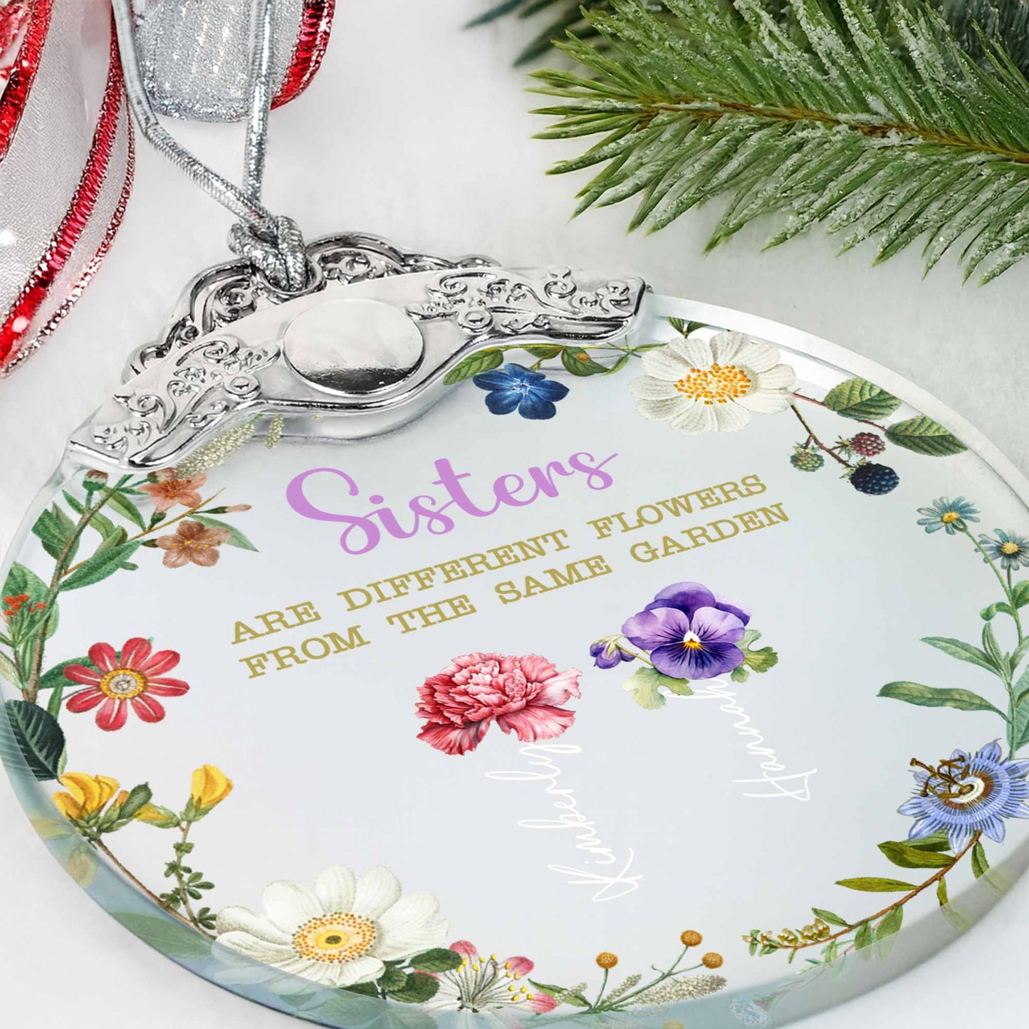 Sisters Are Different Flowers From The Same Garden, Personalized Glass Ornament, Gift For Sisters