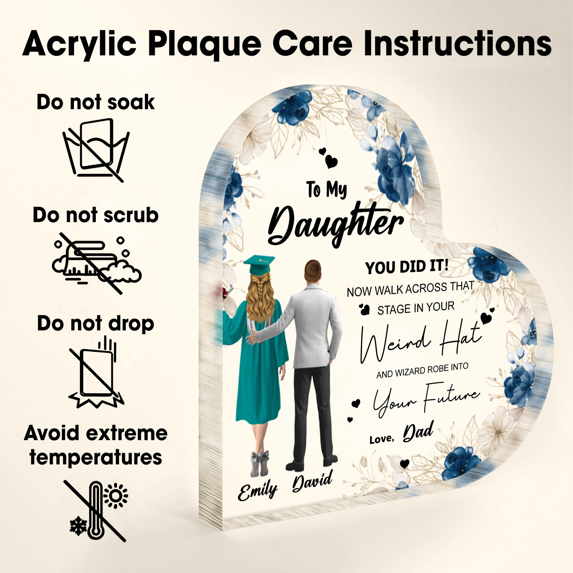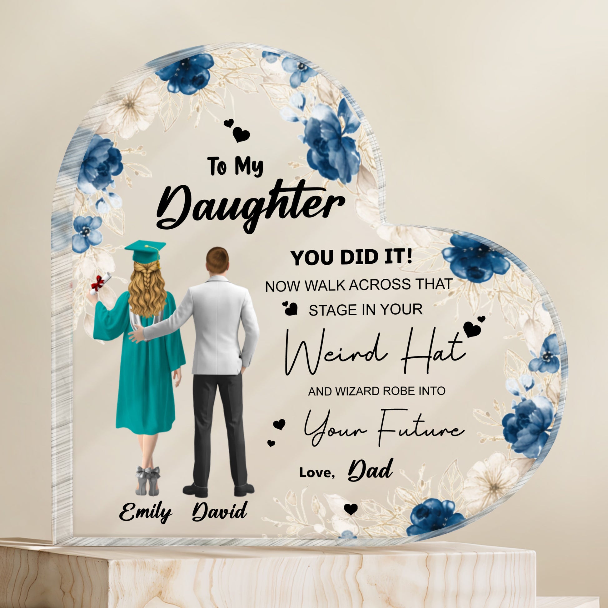 To My Daughter You Did It, Graduation Cap With Floral Design, Personalized Heart Shaped Acrylic Plaque, Gift For Daughters and Graduates