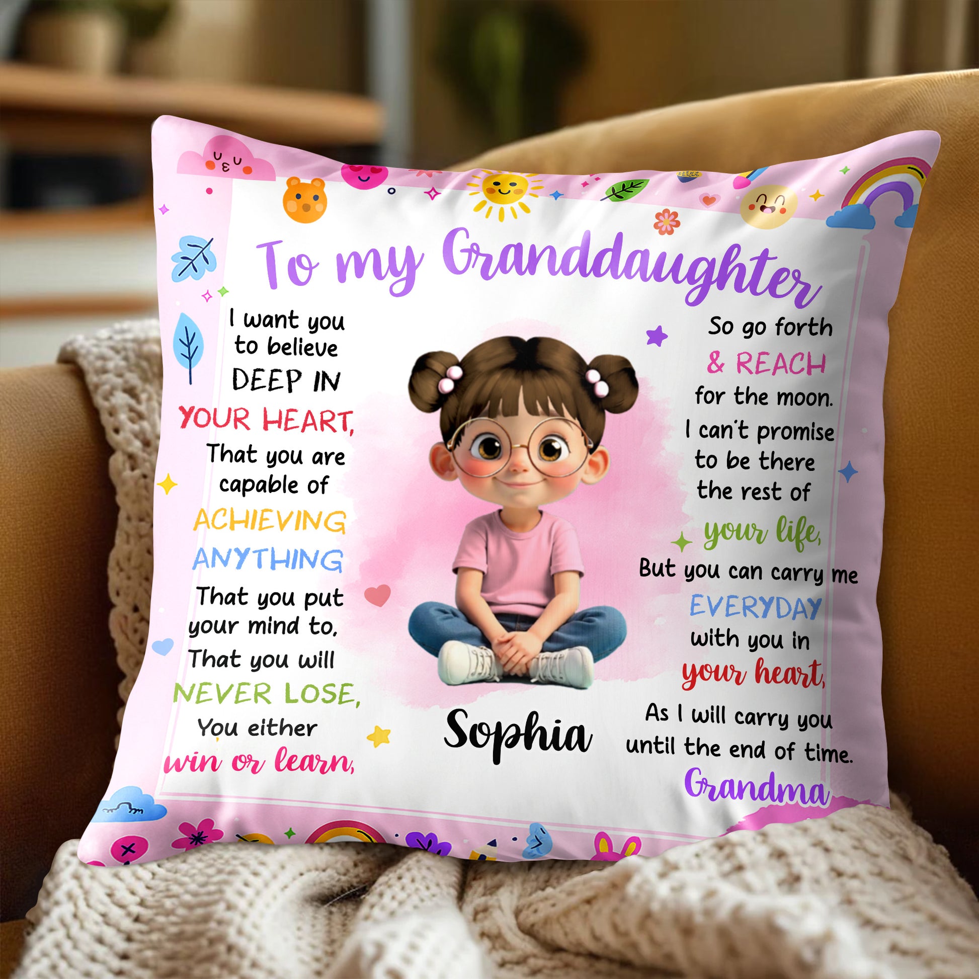 To My Granddaughter Believe In Yourself Cute Girl Hearts Stars, Personalized Custom Pillow, Gift For Granddaughters