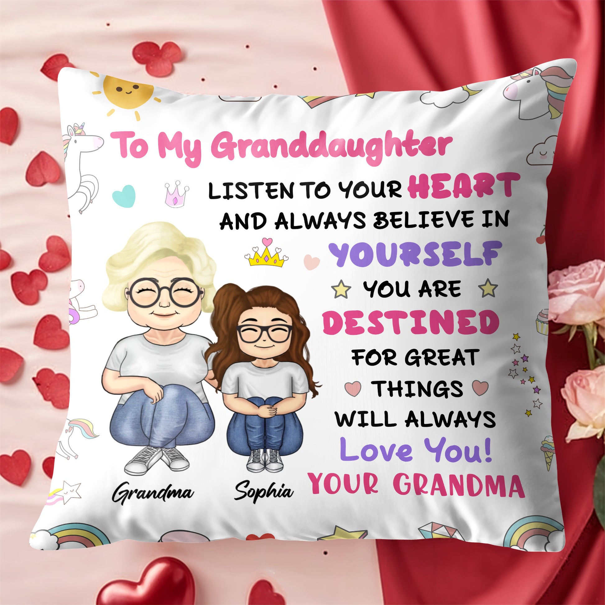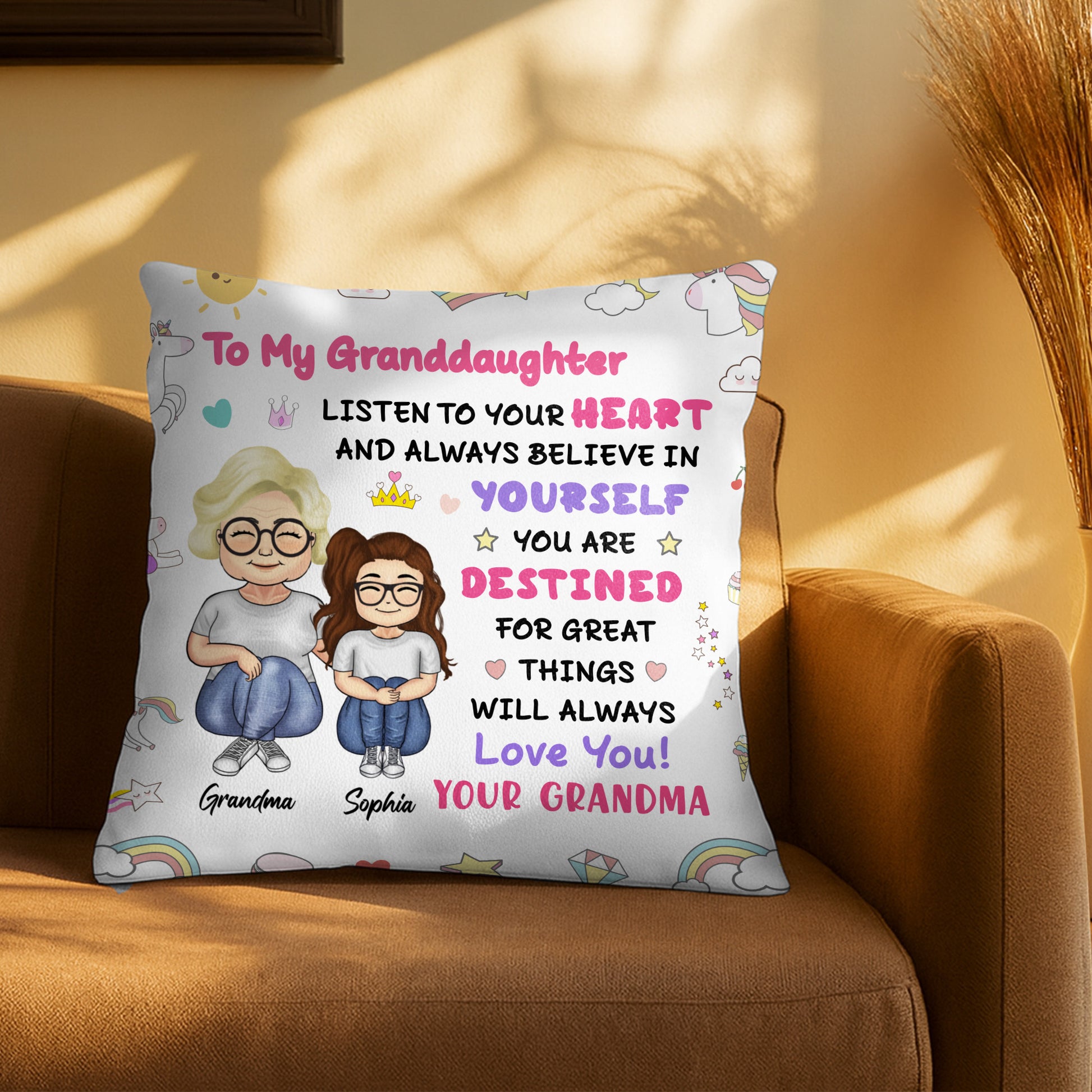 To My Granddaughter, Believe In Yourself, Unicorn And Rainbow, Custom Pillow, Gift For Granddaughters
