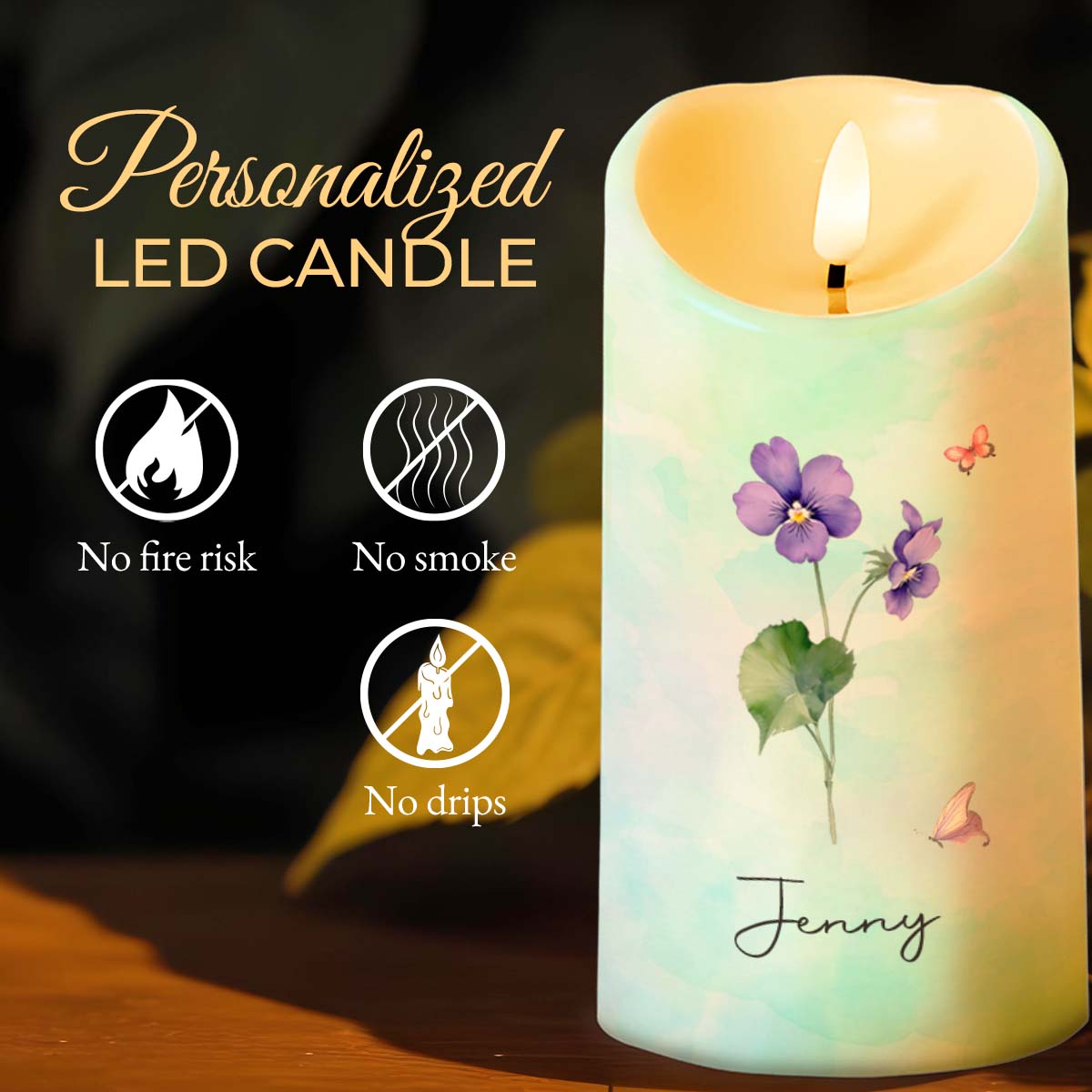 This flameless LED candle is a charming addition to your home, bringing warmth and style to any room—day or night. The soft, flickering glow creates a cozy and relaxing ambiance, all without the risks of an open flame. It's the perfect safe candle alternative for homes with pets or children. Plus, it makes for a thoughtful, personalized gift for any occasion, from birthdays to housewarmings.