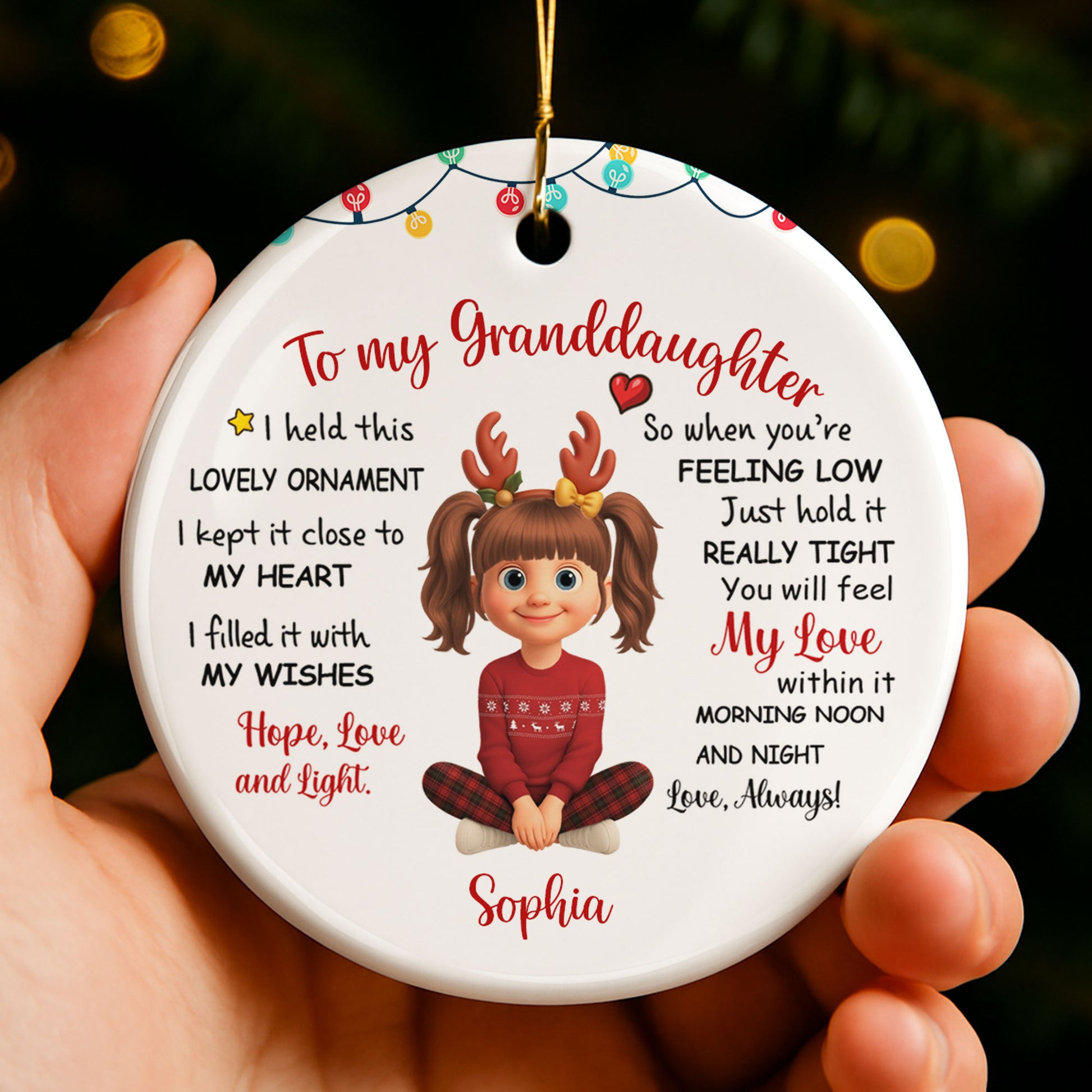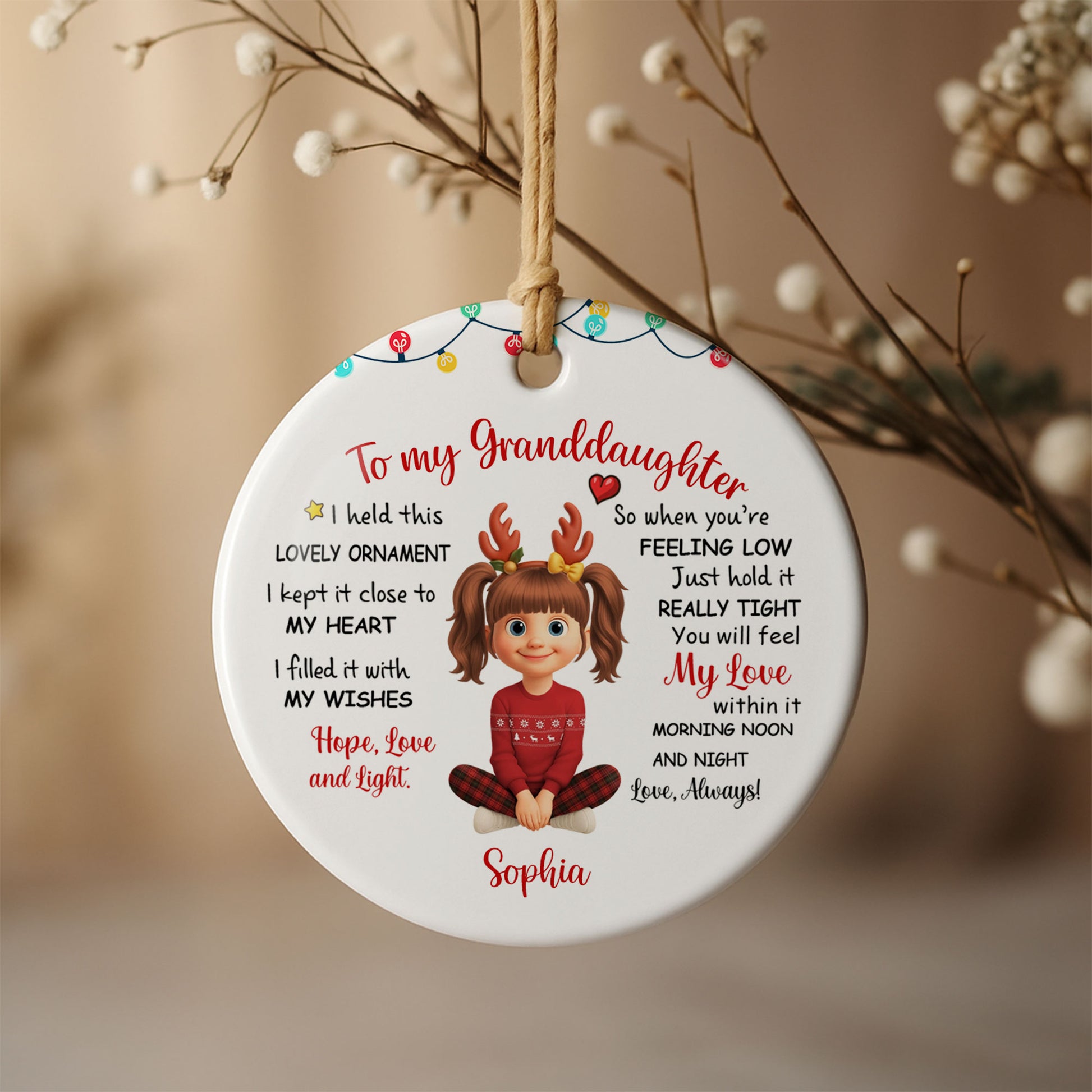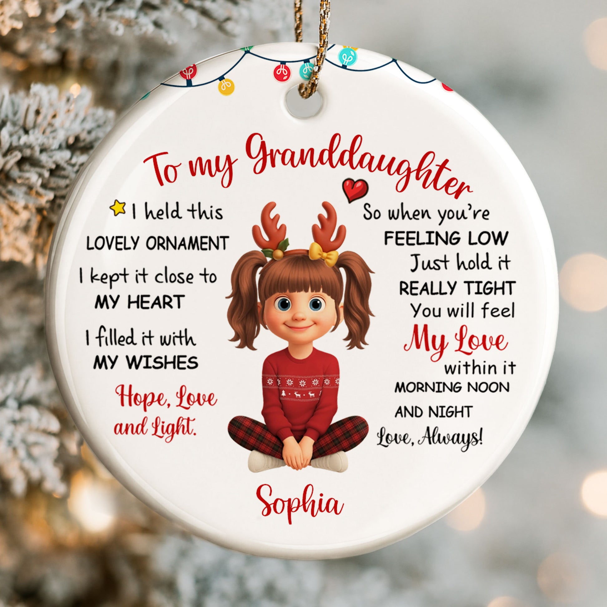 To My Granddaughter, Feel My Love Always, Personalized Ceramic Ornament, Gift For Granddaughters
