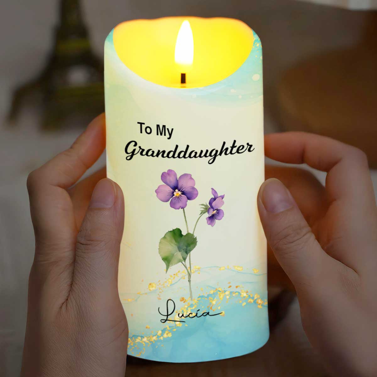 To My Granddaughter, Love From Grandma, Flowers, Custom LED Candle, Gift For Granddaughters