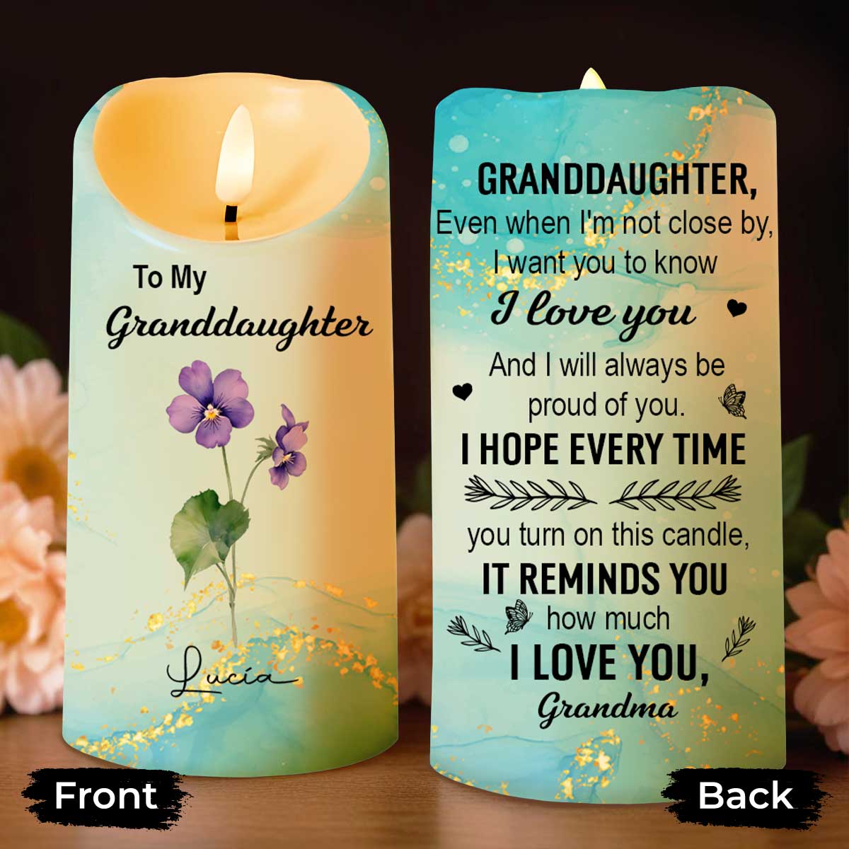 Message: To My Granddaughter, Even when I'm not close by, I want you to know always I Hope Every Time you turn on this candle, It Reminds You how much I Love You, GrandmaNote: Due to differences in monitor settings and lighting effects, the actual color may vary slightly. This is a printed LED candle with a faux 3D effect to create a premium, deep look.