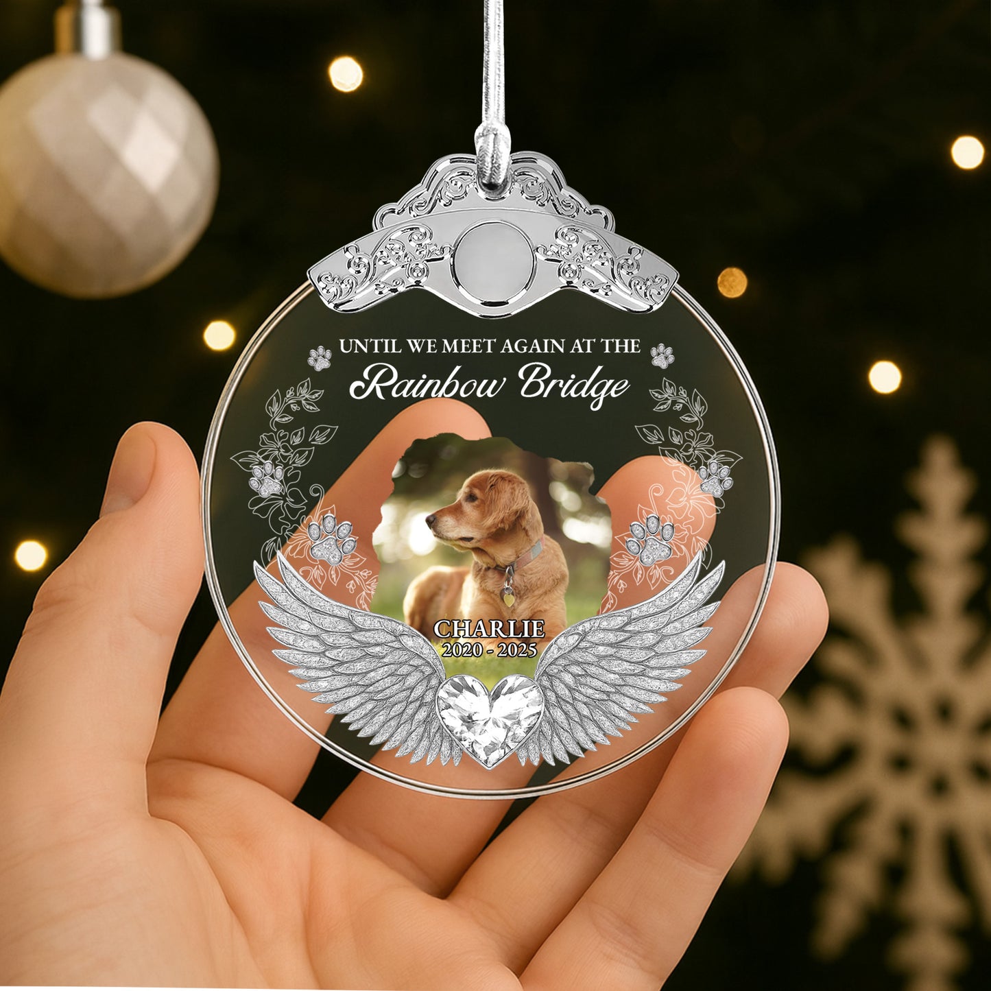 Until We Meet Again At The Rainbow Bridge With Dog And Wings,Personalized Glass Ornament,Gift For Pet Owners and Dog Lovers